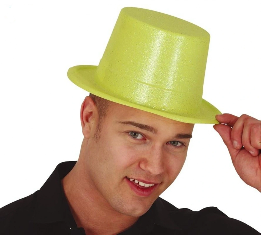 Floresan Sarı Renk Simli Uzun Fötr Melon Şapka 12 Cm