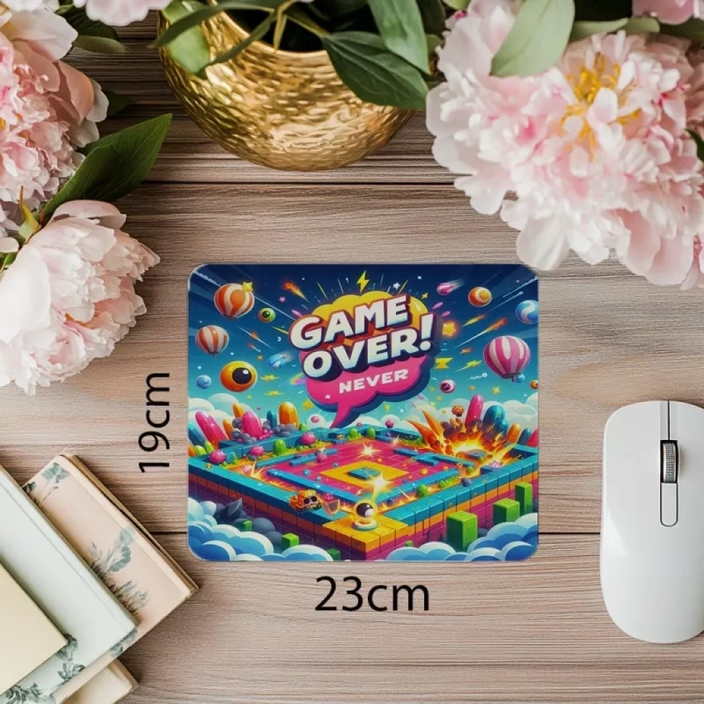 Game Over Never Yazılı Karikatür Stil Mousepad - 19x23 cm 2 mm Dikdörtgen İthal Baskılı Mouse Pad