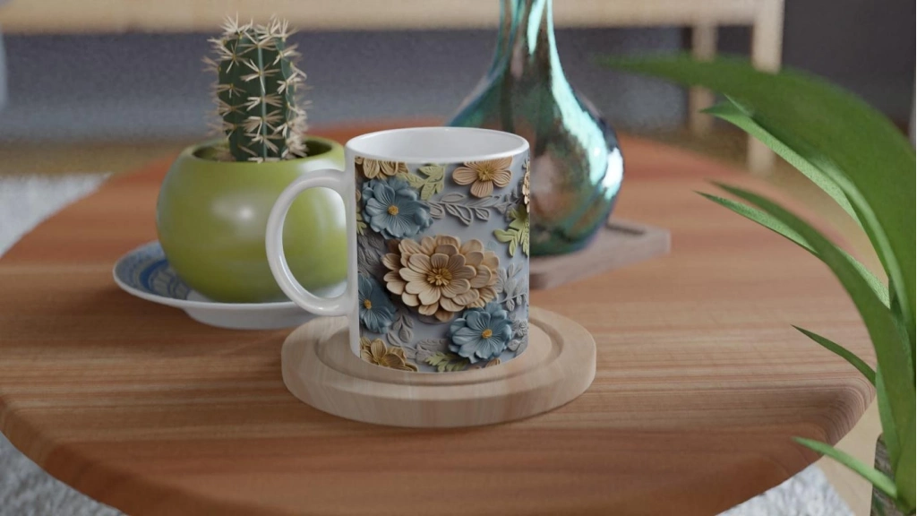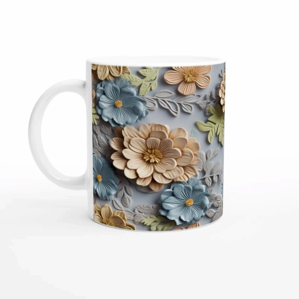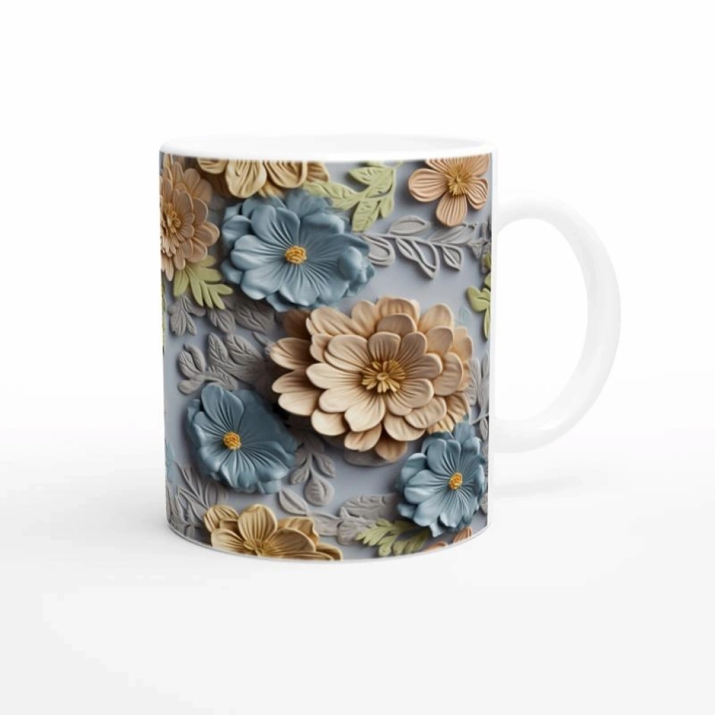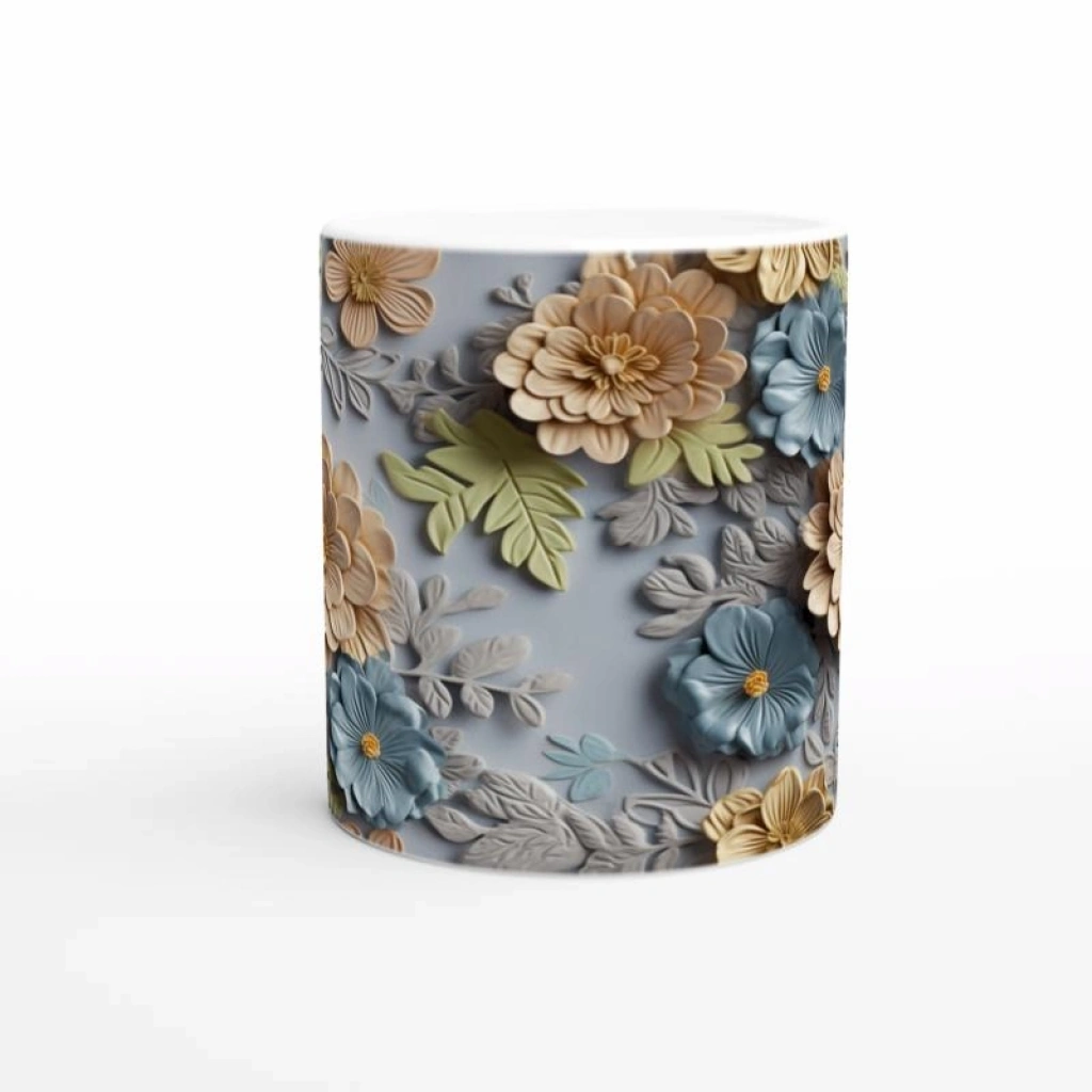 Gök Mavisi Çiçek Bahçesi Kupa Bardak, 3D dokulu detayları ve pastel renk harmonisiyle dikkat çeker. Günlük kullanım için şık bir tercih olurken aynı zamanda özel günler için zarif bir hediye seçeneği sunar.