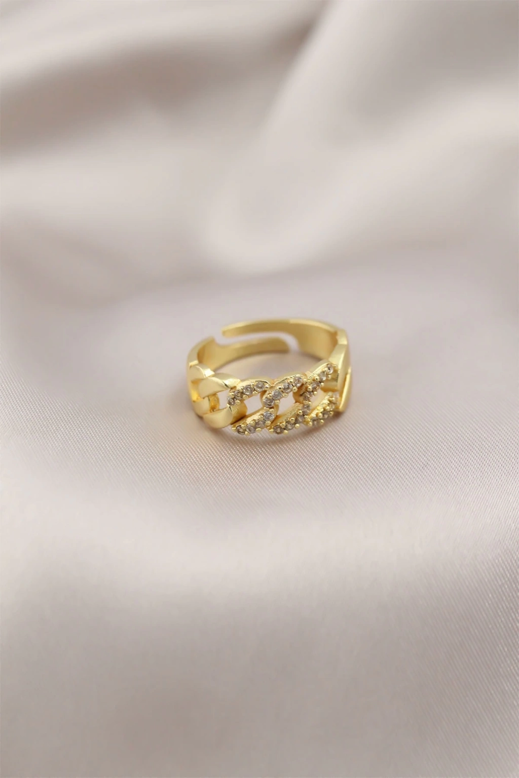 Gold Renk Metal Zincir Model Taşlı Kadın Yüzük