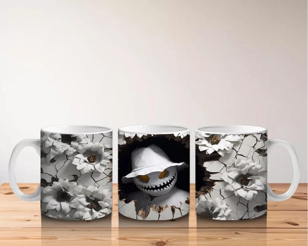 Gölgelerden Bakan Şapkalı Ruh – Hediyelik Kahve Kupası Gölgelerin içinden göz kırpan gizemli şapkalı figür, bu baskılı kupaya gotik bir derinlik kazandırır. Cadılar Bayramı’na özel karanlık atmosferli bir hediyelik kahve kupası seçeneğidir.