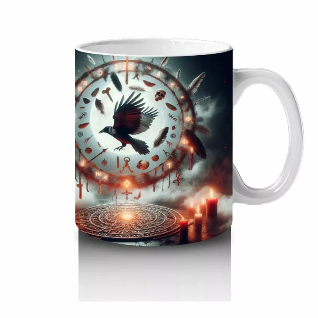 Göz Figürü ve Alevlerle Çevrelenmiş Gotik Büyü Temalı Cadılar Bayramı Baskılı KupaGöz figürü ve alevlerle çevrelenmiş gotik büyü temalı bu kupa, Halloween dekorunuza etkileyici bir dokunuş yapar.