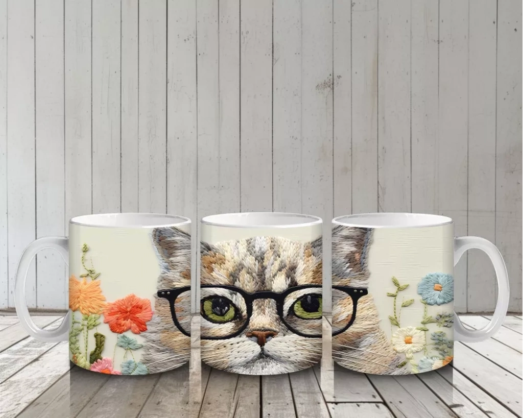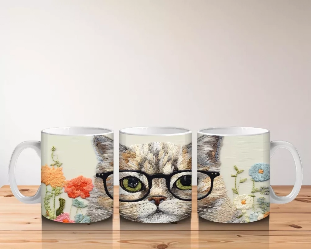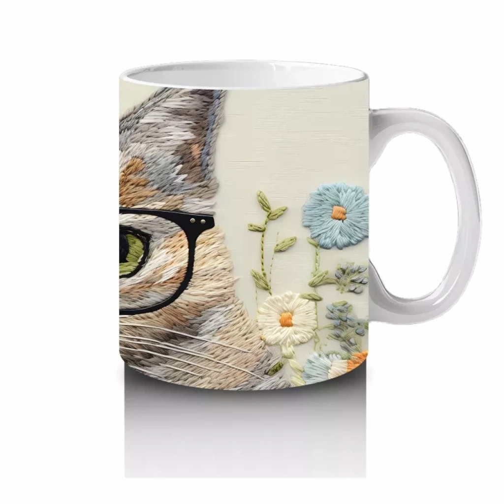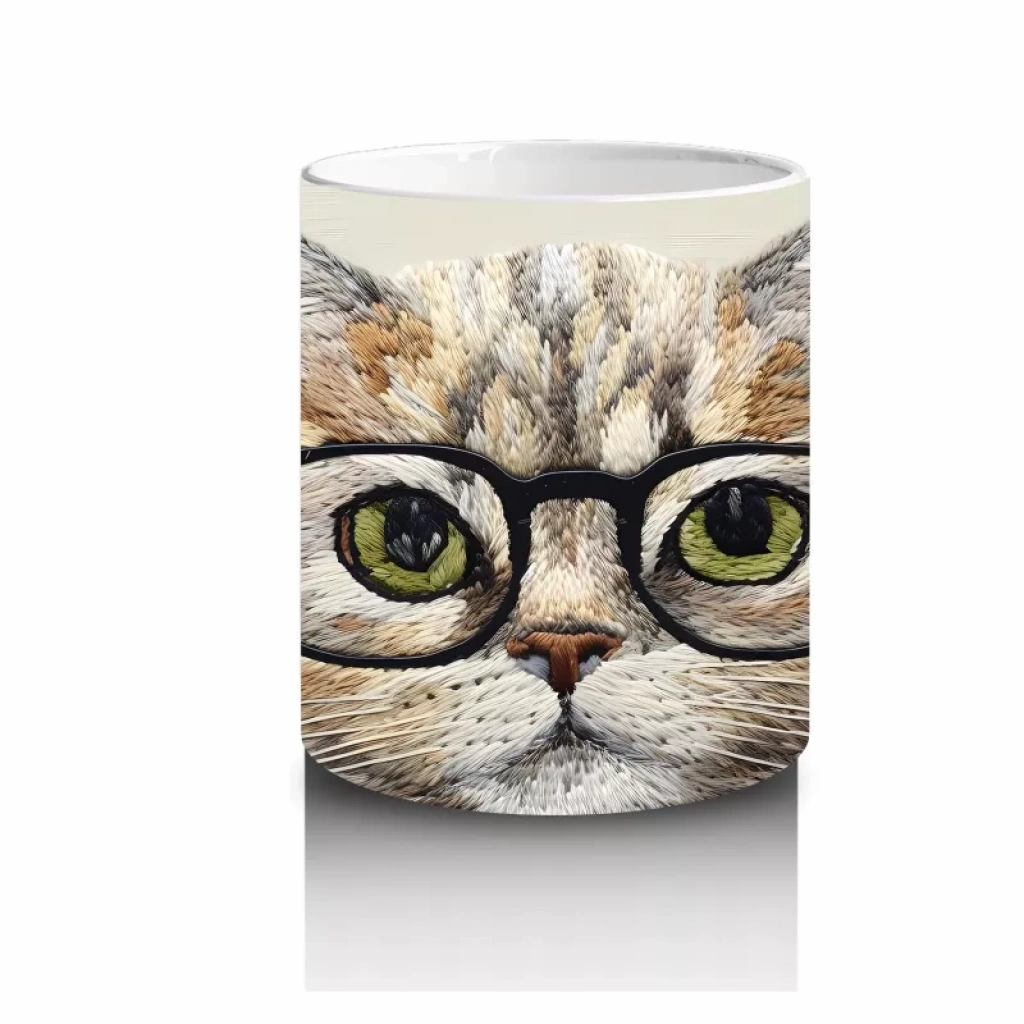 Gözlükleriyle entelektüel bir hava kazanan bu meraklı kedi figürü, sevimliliğiyle dikkat çekiyor. Kitapsever kedi tutkunları için mizahi ve şık bir kupa tasarımı.