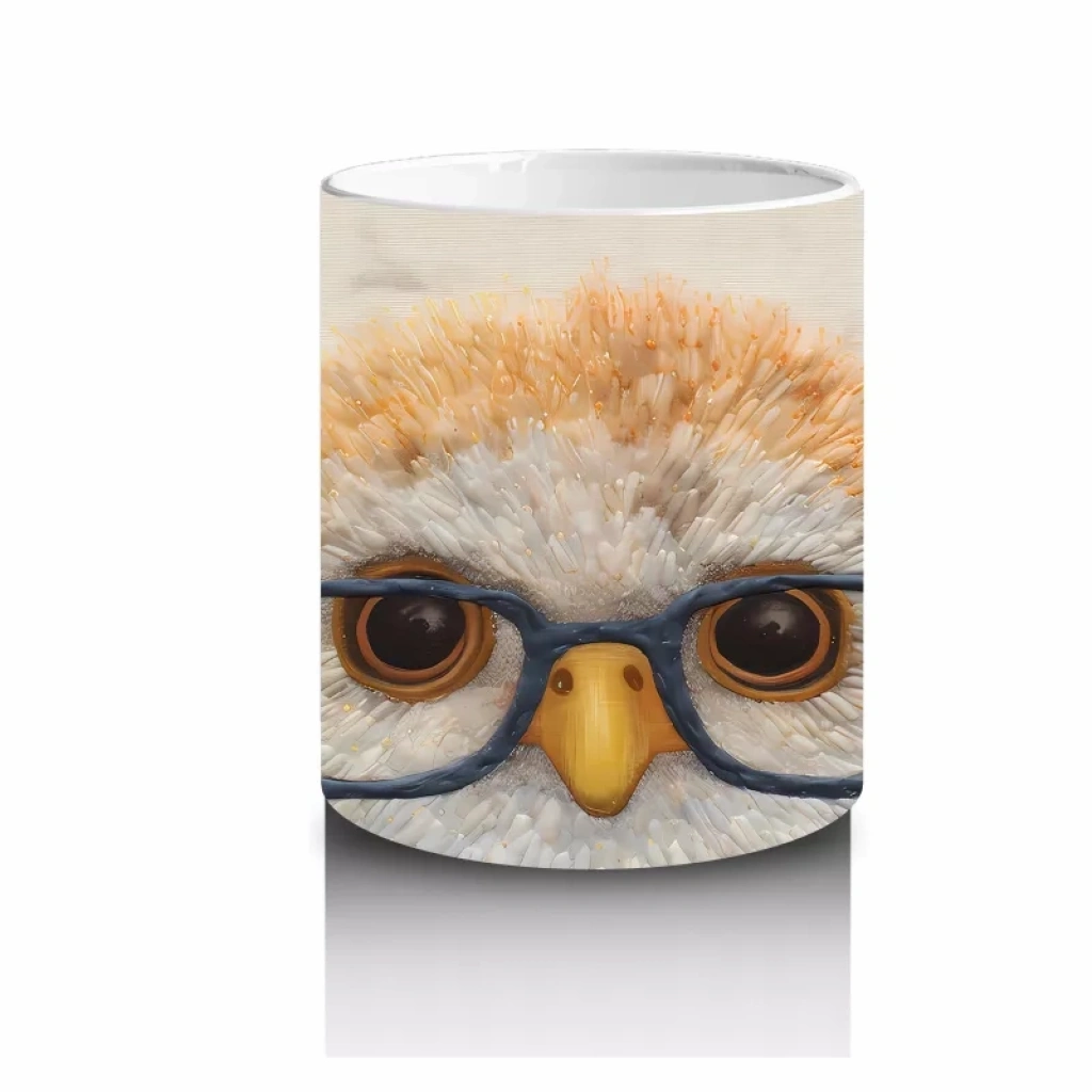 Gözlüklü Sevimli Baykuş Portresi – Baskılı Kahve Kupası