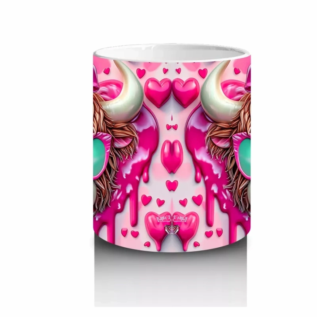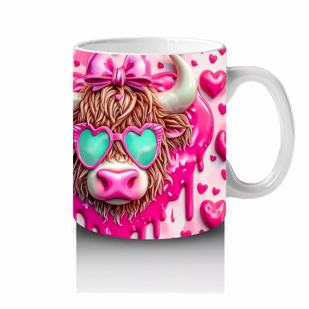 Kalpli arka plan ve gözlük detayıyla karakter kazanan bu neşeli buzağı, enerjik ve eğlenceli bir stil sunuyor. Renkli tasarımlardan hoşlananlar için iç ısıtan bir kupa tercihi.