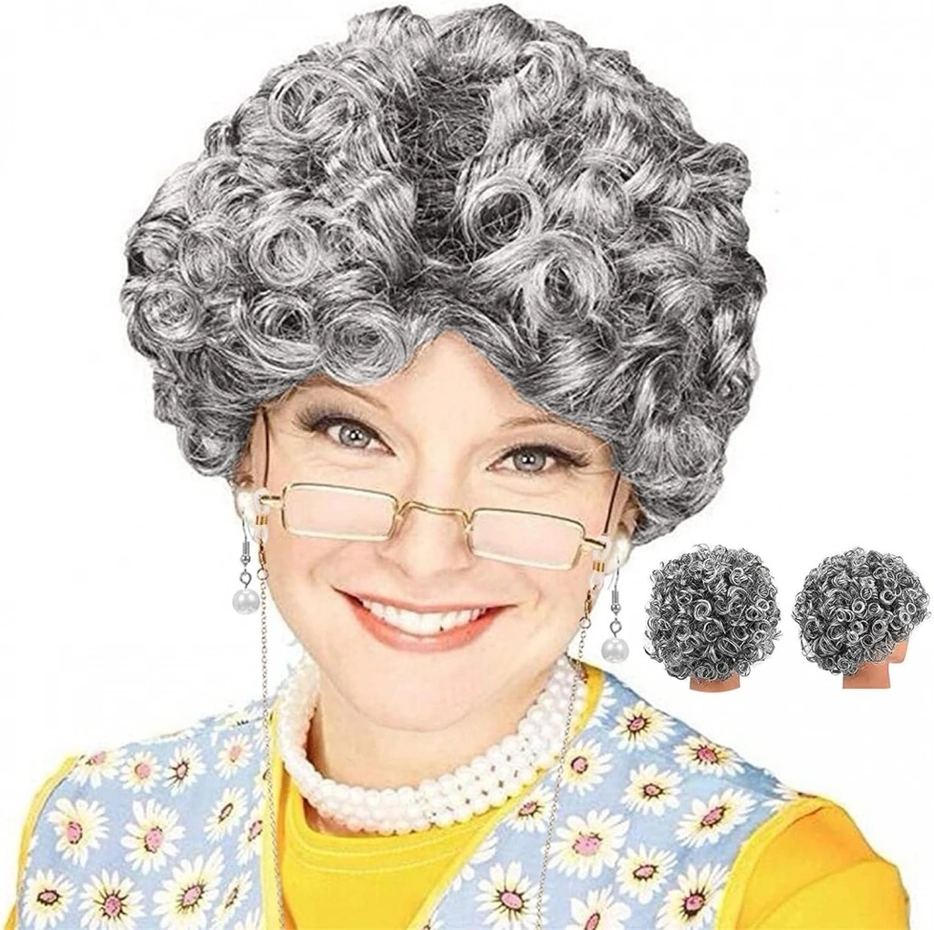 Gri Renk Kıvırcık Yaşlı Peruk Büyükanne Peruğu Astarlı Bonus, partiler, diğer özel günler için mükemmel bir aksesuardır. Hem erkekler hem de kadınlar tarafından giyilebilen, kıvırcık gri saçlardan yapılmış sentetik bir peruktur. Peruk, rahat bir uyum için ayarlanabilir bir kafa bandına sahiptir ve ayrıca doğal bir görünüm için astarlıdır.