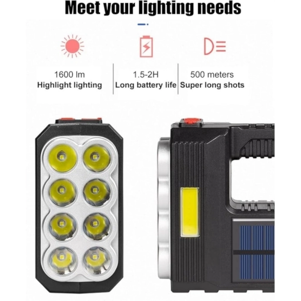 GÜNEŞ ENERJİLİ KAMP AV FENERİ“Doğadan Gelen Işıkla Maceralarınızı Aydınlatın!”Güneş Enerjili Kamp Av Feneri, doğa aktivitelerinizde ve açık hava maceralarınızda ihtiyacınız olan çok yönlü bir aydınlatma çözümü sunar. Çok seviyeli anahtarlama özelliği ile farklı aydınlatma modları arasında kolayca geçiş yapabilir ve çeşitli kullanım ortamlarına uygun ışık seviyelerini zahmetsizce ayarlayabilirsiniz.Kompakt ve hafif tasarımı sayesinde kolay taşınabilir olan bu fener, su geçirmez yapısıyla rüzgar ve yağmurdan etkilenmez, böylece macera, gece koşusu, kamp, bakım ve yürüyüş gibi etkinliklerde güvenle kullanılabilir. Enerji tasarrufu sağlayan ve çevre dostu LED fener, yalnızca güneş enerjisiyle şarj edilebilir. Uzun pil ömrü sunan dahili 18650 lityum pil ile uzun süreli kullanım imkanı tanır.Yüksek kaliteli 3030 lamba boncukları ve COB yan ışıkları ile donatılmış olan Güneş Enerjili Kamp Av Feneri, güçlü parlaklık, yüksek ışık kalitesi ve saf renk sunumu ile öne çıkar. USB ve solar şarj seçenekleri, farklı senaryoların aydınlatma ihtiyaçlarını karşılayarak kullanıcılara esneklik sağlar. Dayanıklı ABS su geçirmez gövdesi ile her koşulda yanınızda olmaya hazırdır.
