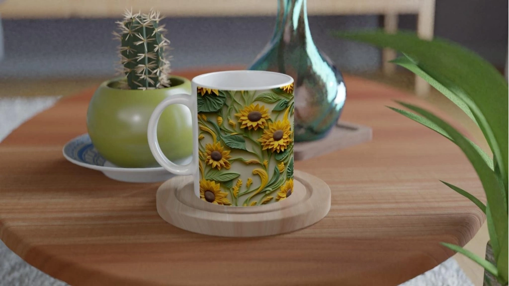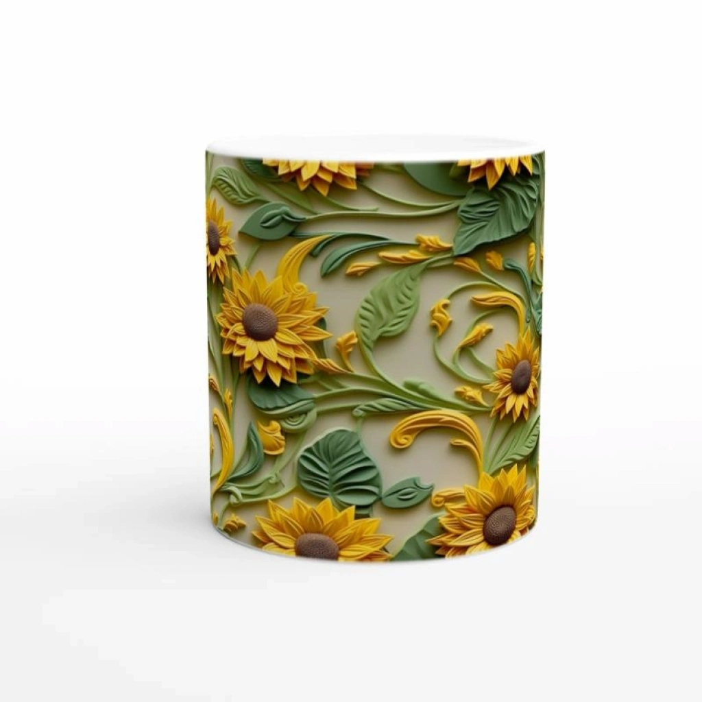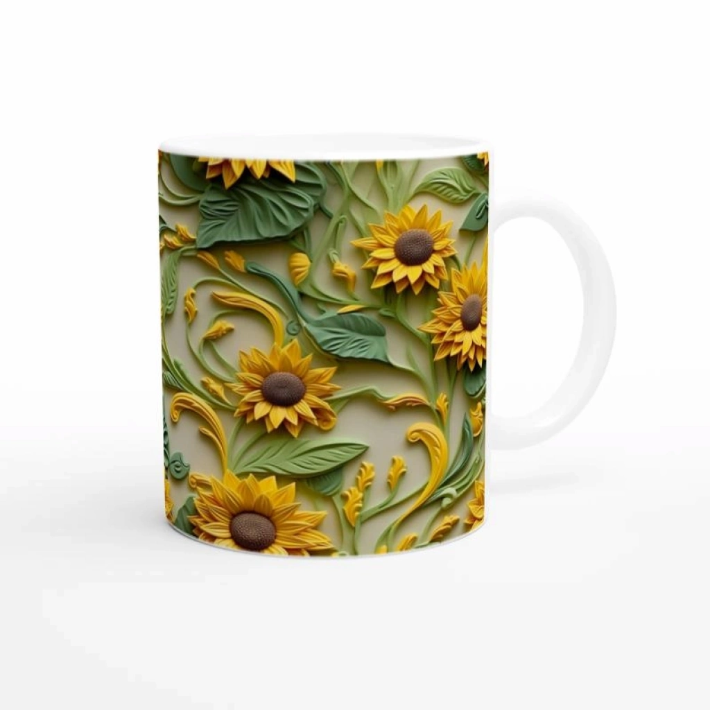 Güneşin Işıltısıyla Ayçiçeği Kupa, zarif kabartma dokulu tasarımı ve canlı yaprak detaylarıyla güne keyifli bir başlangıç sunarken sofranıza doğadan bir parça getiriyor.