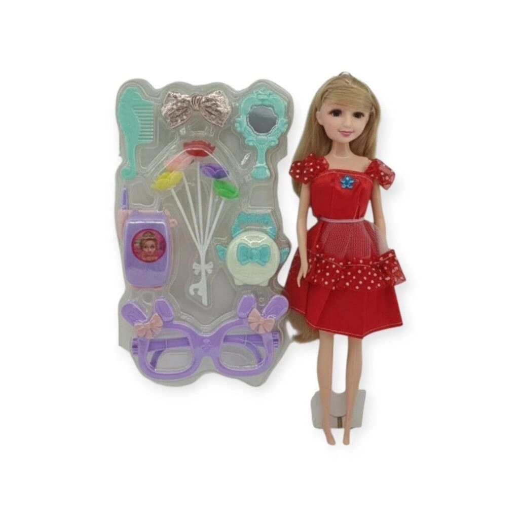 Güzellik Seti 7 Parça Aksesuarlı Bebek Seti - Kırmızı