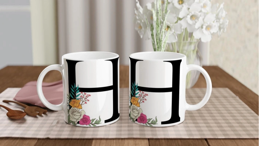 H Harfi Çiçek Motifli Kupa Bardak