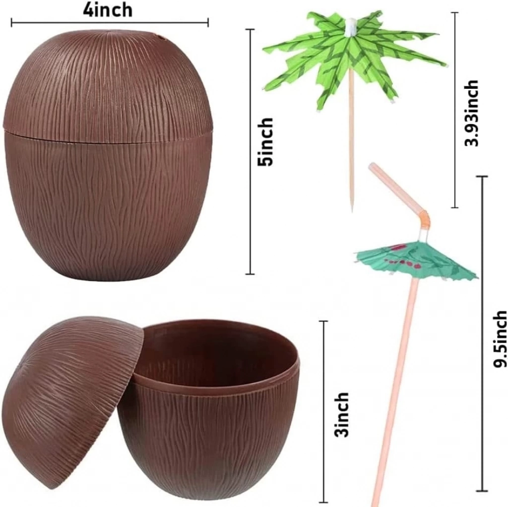 Hawaii esintisini partilerinize taşıyın Hindistan cevizi şeklindeki pipetli içecek kabı, 10x13 cm boyutu ile rahat bir içim deneyimi sunar. Yaz partileriniz, plaj etkinlikleriniz veya evdeki soğuk içecek keyfiniz için mükemmel bir seçenek.