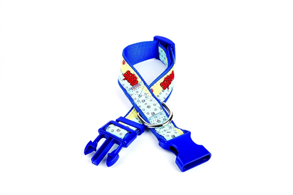 Doggie Desenli Süslü Dokuma Köpek Boyun Tasması 1,5 x 25-40 cm Mavi