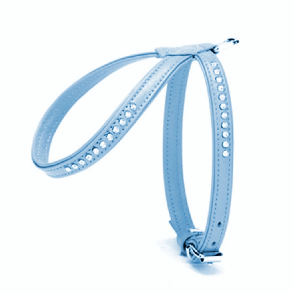 Doggie Flotter Swarovski Taşlı Deri Köpek Göğüs Tasması 1,2 x 21-30 cm Mavi