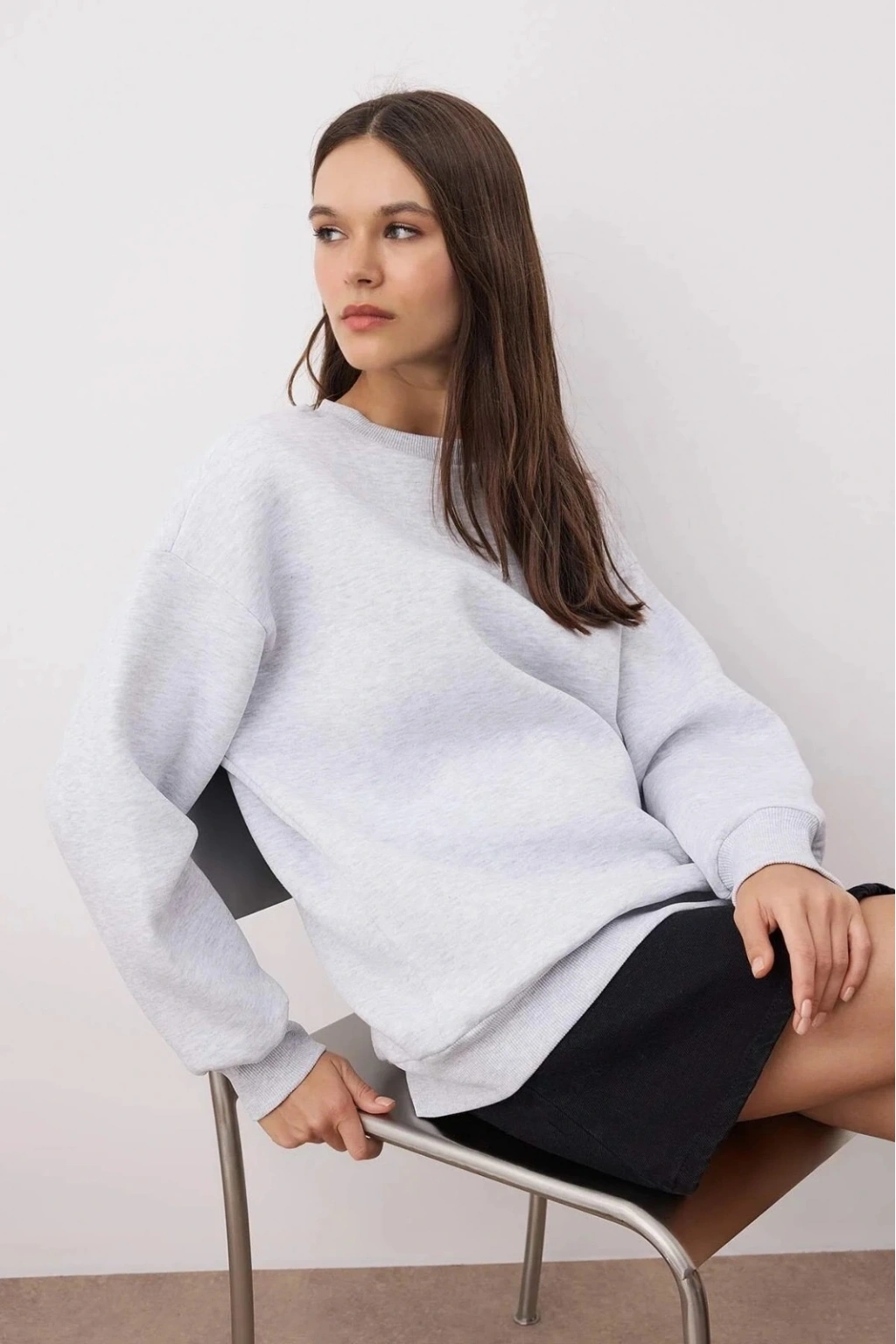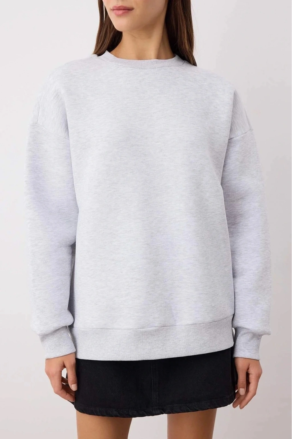 şık ve şıklık arayan kadınlar için tasarladığı 3 iplik şardonlu bisiklet yaka sweatshirt gri, gardırobunuza şıklık ve konfor katacak.