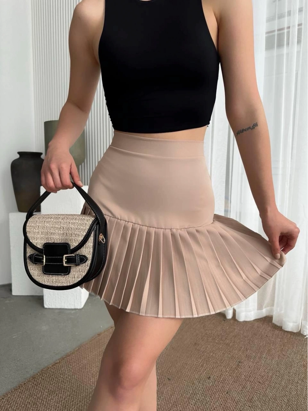 ÇOK SATAN altı pliseli mini etek, şıklık ve rahatlığı bir arada sunuyor.