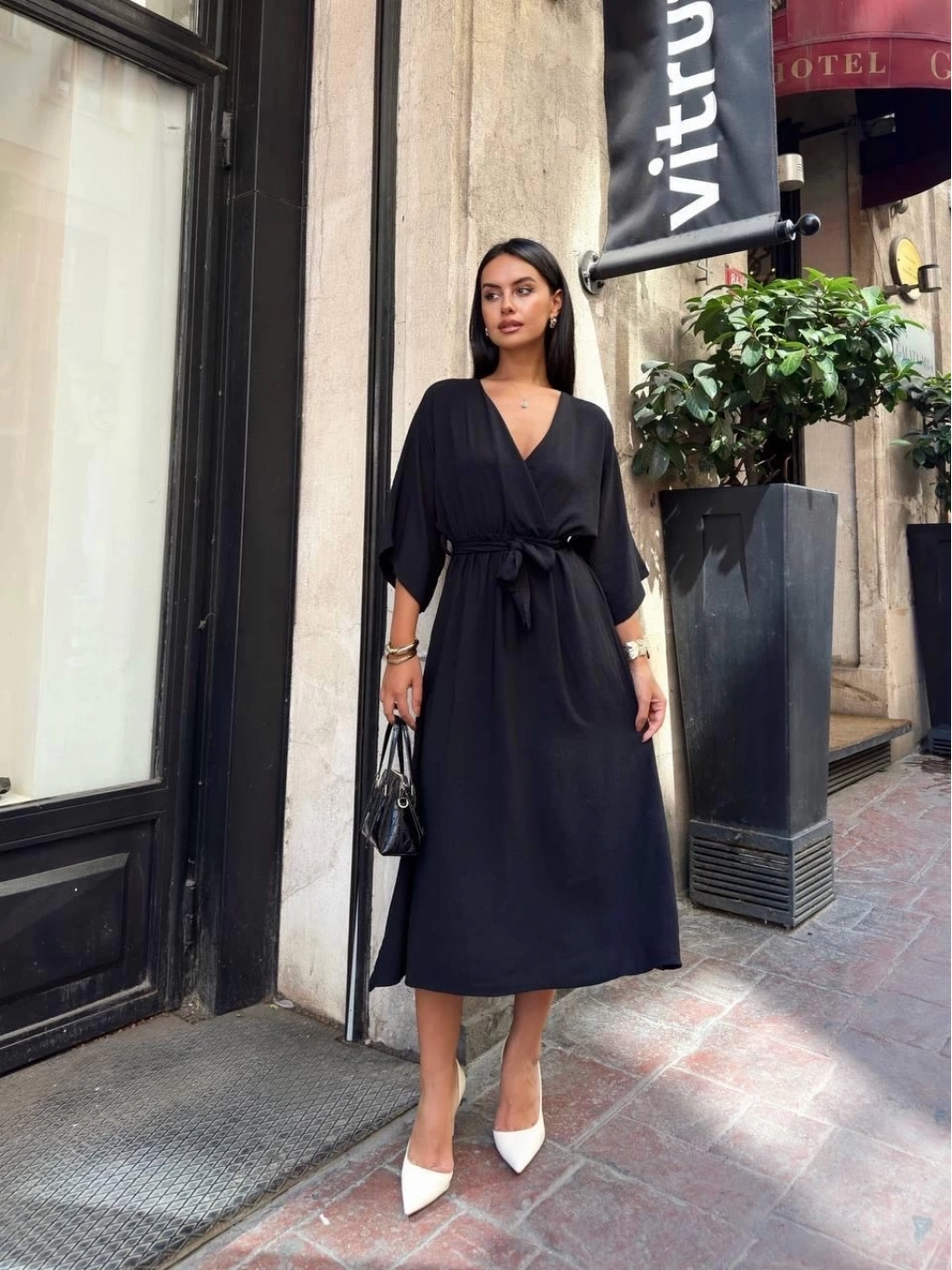 Şıklık ve konforu bir arada arayan kadınların tercihi olan ÇOK SATAN Ayrobin midi elbise, gardırobunuzun vazgeçilmez parçalarından biri olmaya aday!