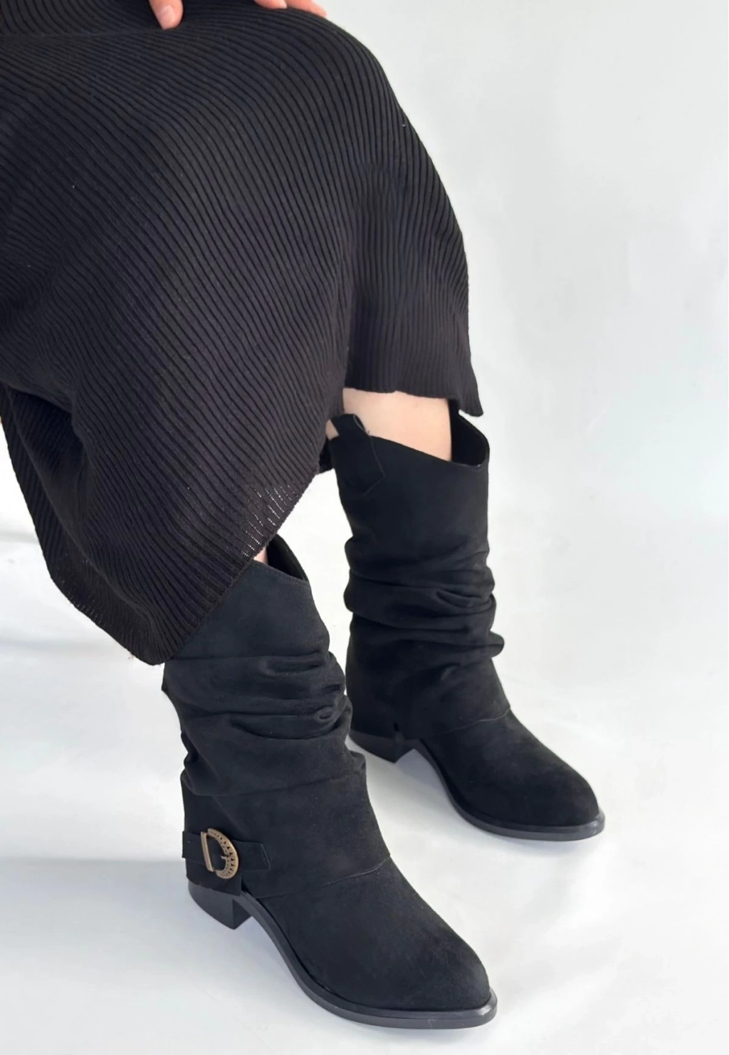 Canty Siyah Süet Körüklü Topuklu Çizme
