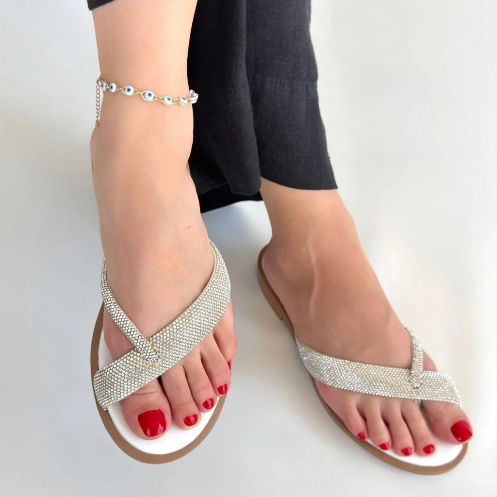 Eday Gümüş Boncuk İşlemeli Terlik