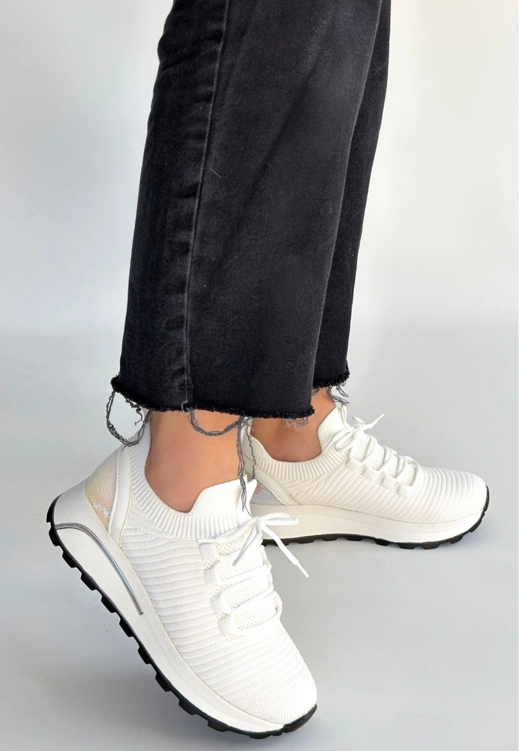 Feort Beyaz Triko Bağcıklı Spor Ayakkabı