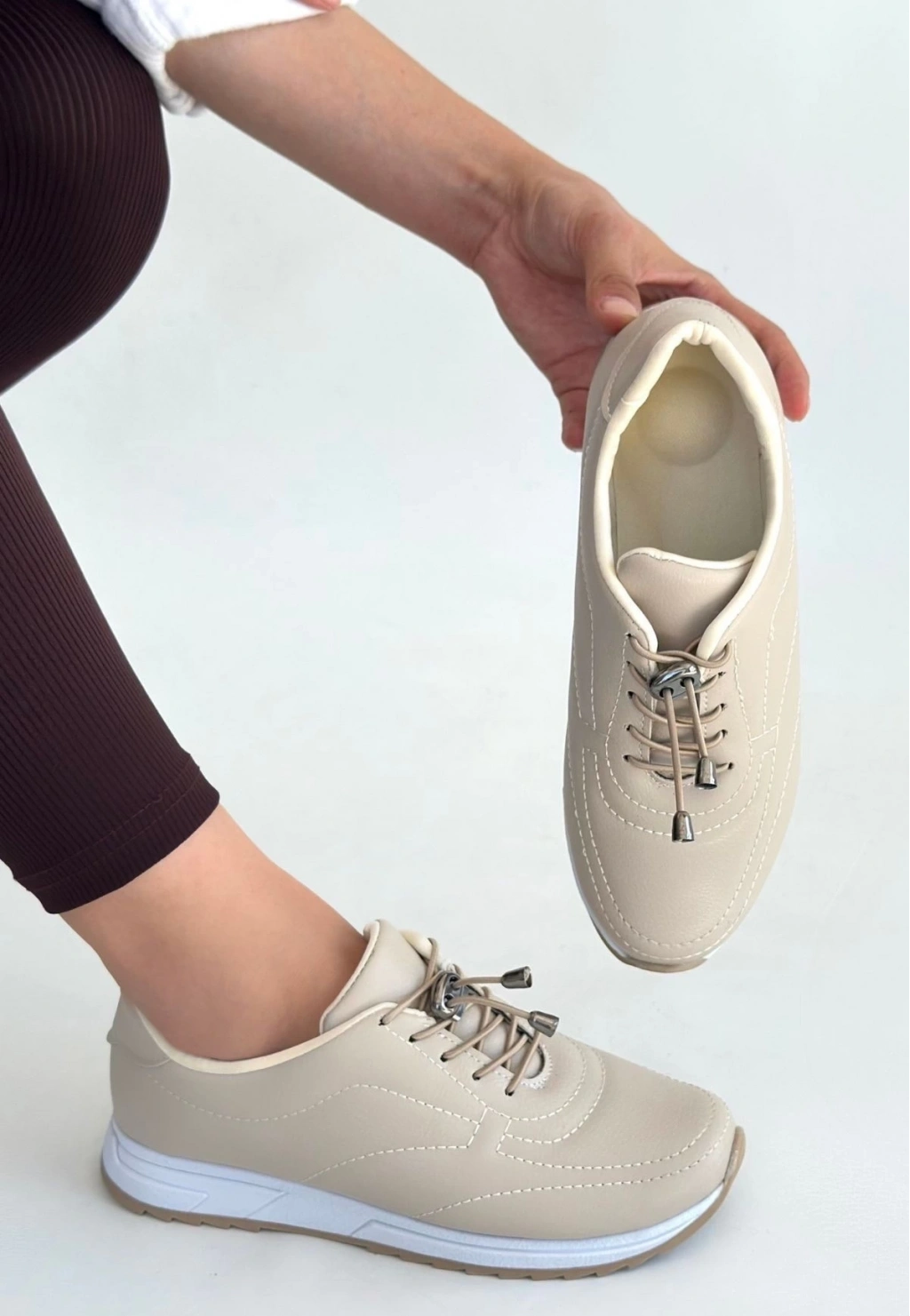 Finna Bej Cilt Bağcıklı Spor Ayakkabı