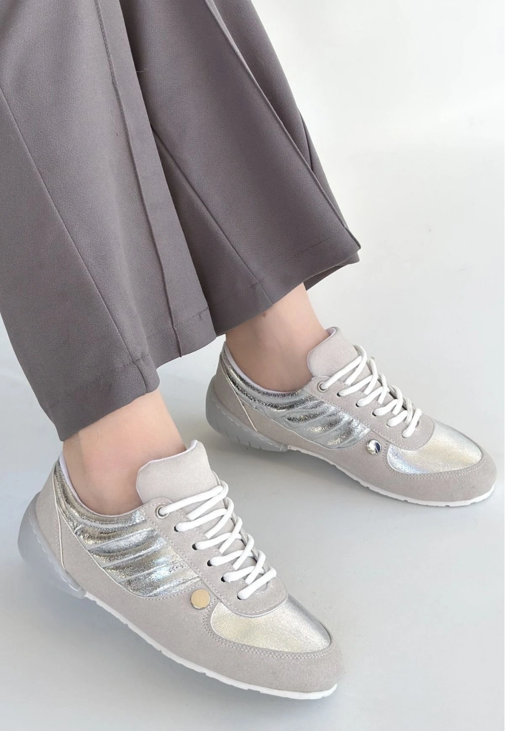 Jawen Gri Nubuk Gümüş Detaylı Spor Ayakkabı
