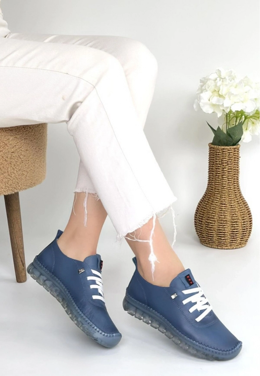 Jiten Mavi Deri Bağcıklı Spor Ayakkabı