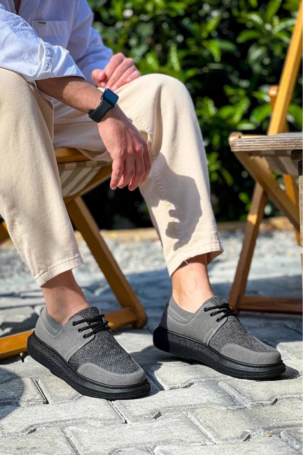KB-042 Bağcıklı Gri Siyah Taban Günlük Erkek Ayakkabı