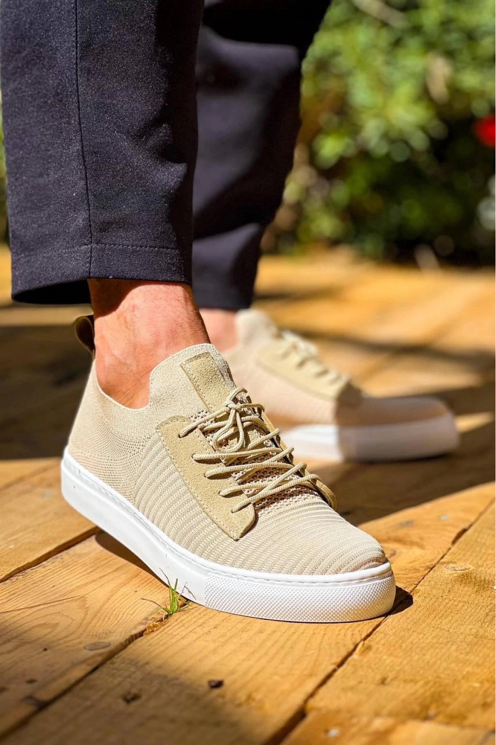 KB-110 Bej Triko Yüksek Taban Bağcıklı Günlük Erkek Ayakkabı