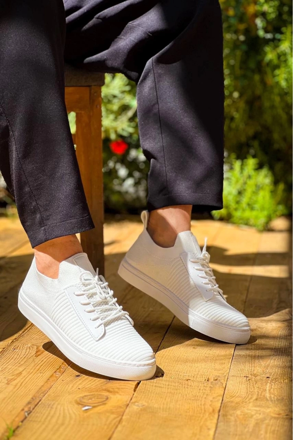 KB-110 Beyaz Triko Yüksek Taban Bağcıklı Günlük Erkek Ayakkabı