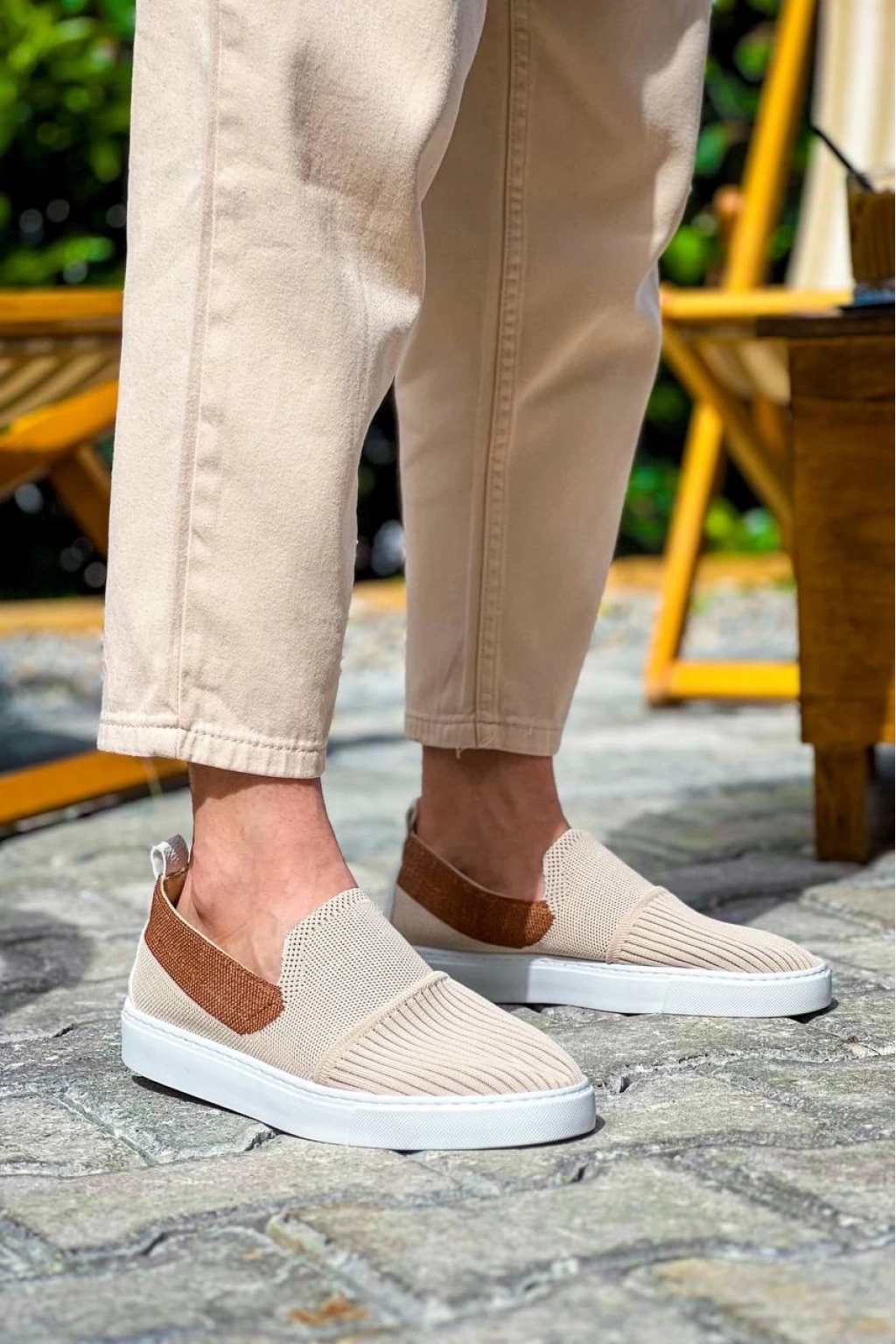 KB-114 Bej Taba Triko Yüksek Taban Bağcıksız Günlük Erkek Ayakkabı