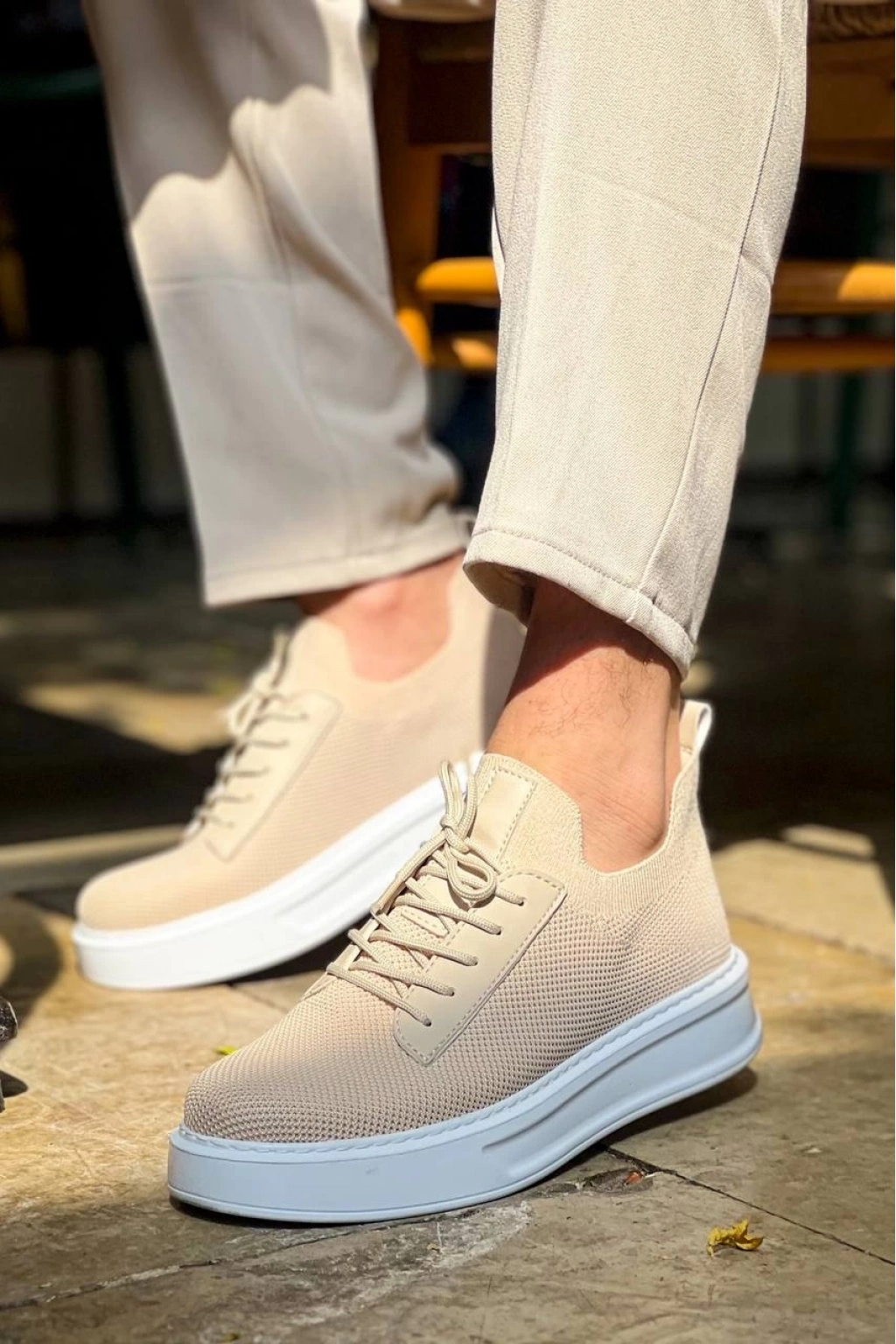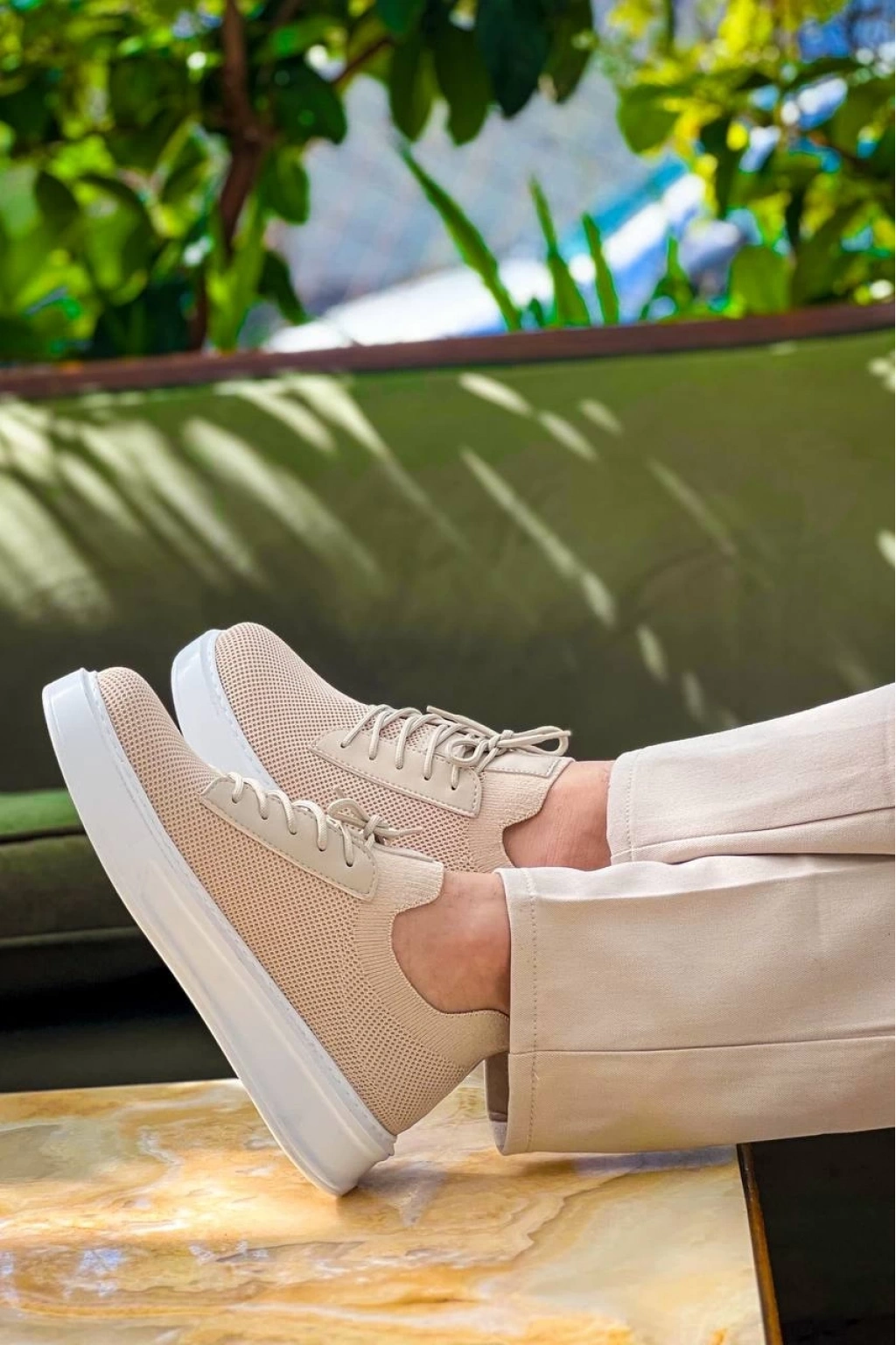 KB-116 Bej Bağcıklı Triko Günlük Erkek Ayakkabı