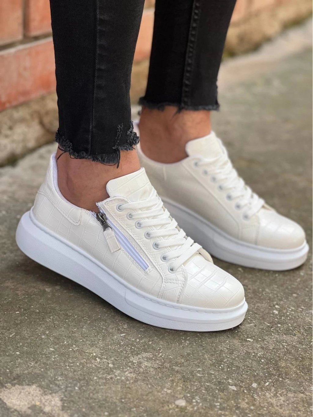 KB-309 Beyaz Fermuar Ve Bağcıklı Günlük Erkek Ayakkabı