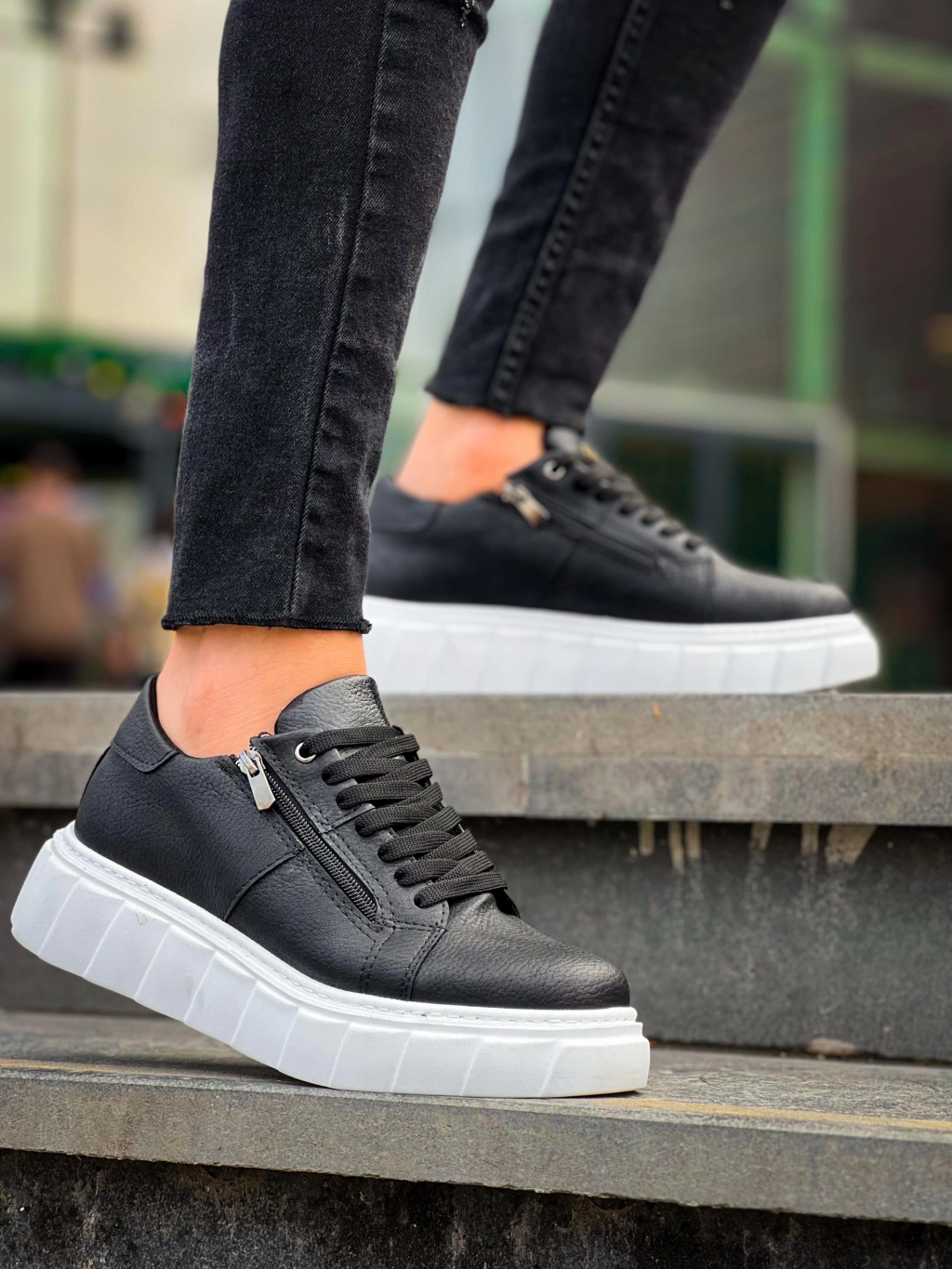 • KB-X155 Kuback Siyah Cilt Detaylı Beyaz Yüksek Taban Günlük Spor Ayakkabı