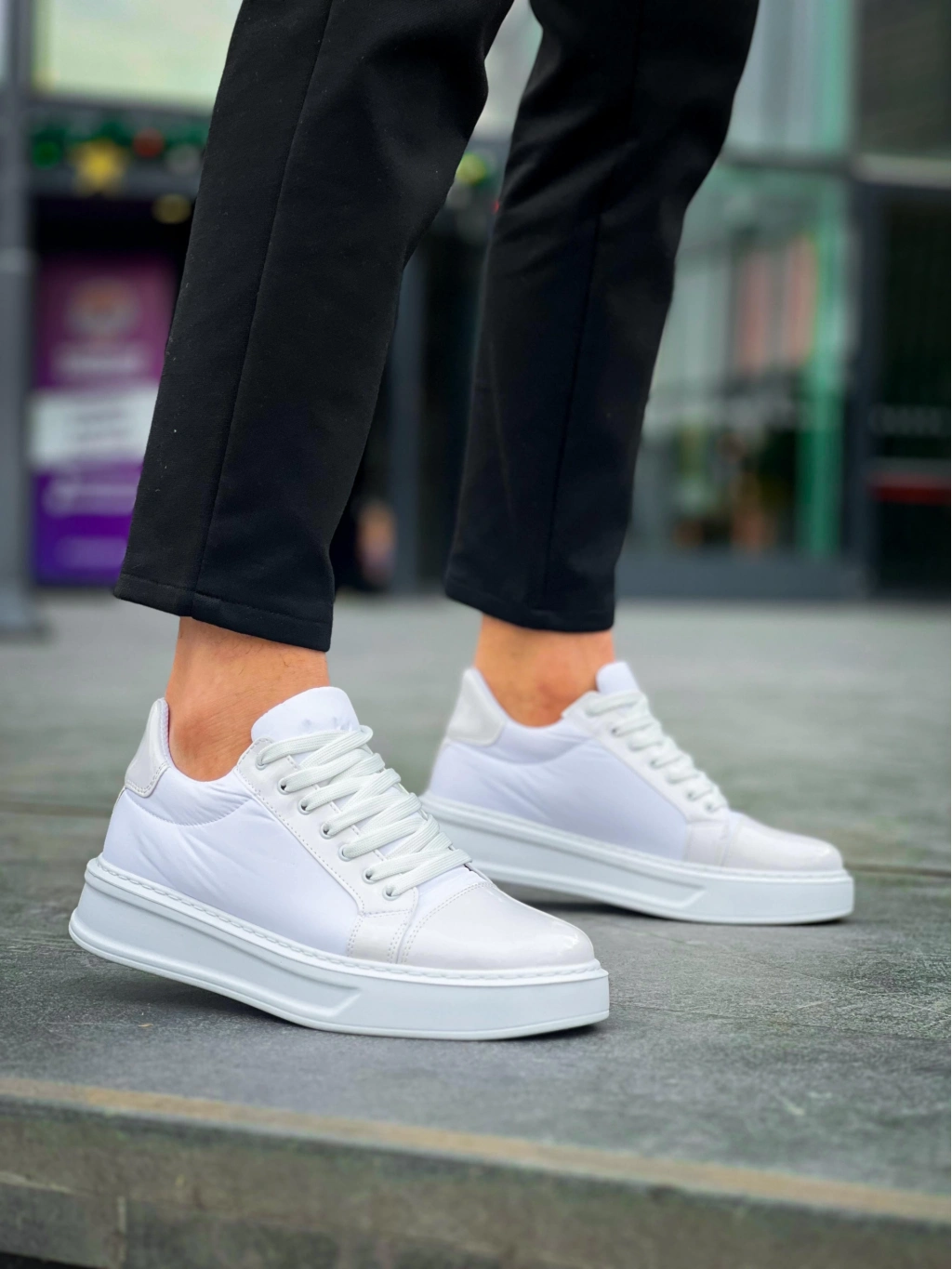 KB-X46 Beyaz Rugan Yüksek Beyaz Taban Günlük Spor Ayakkabı