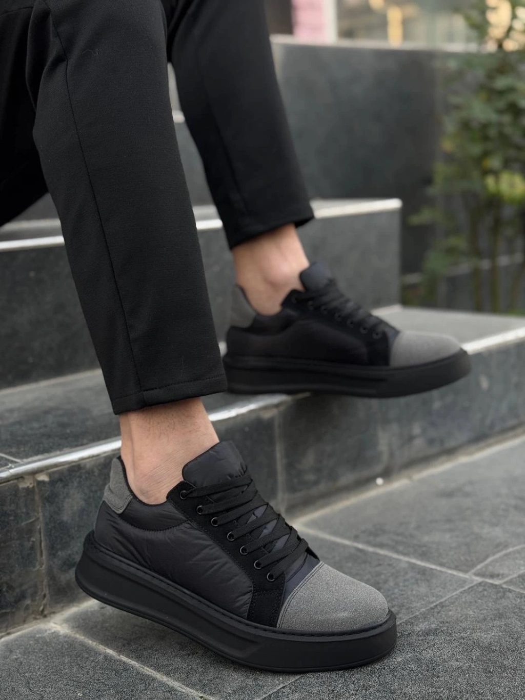 • KB-X46 Kuback Siyah Gri Yüksek Siyah Taban Günlük Spor Ayakkabı