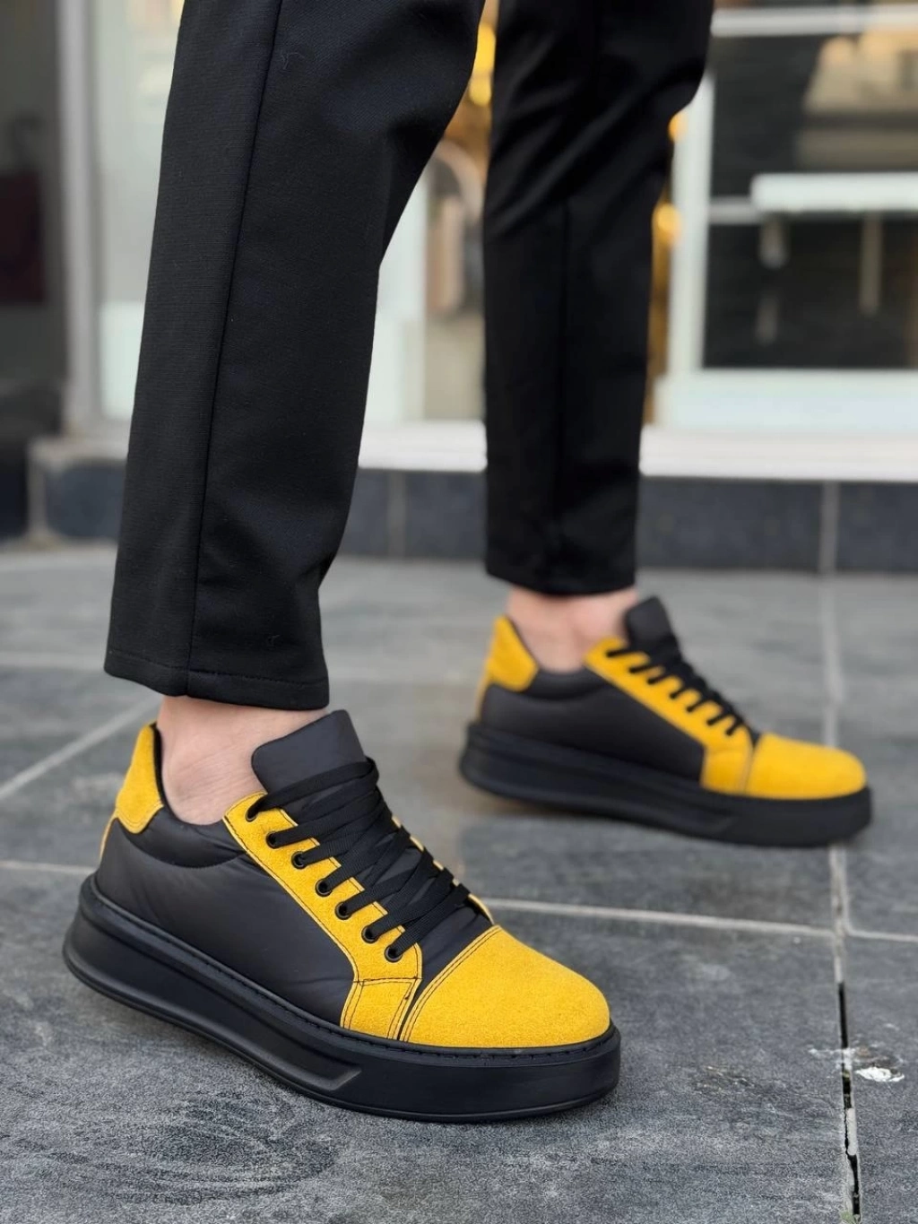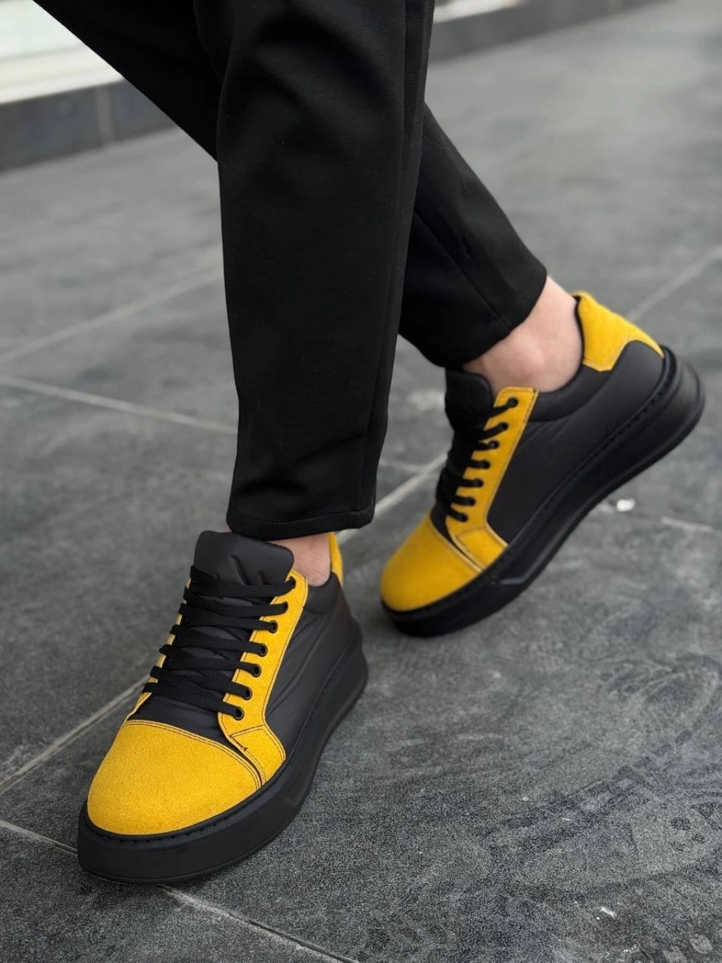 • KB-X46 Kuback Siyah Sarı Yüksek Siyah Taban Günlük Spor Ayakkabı