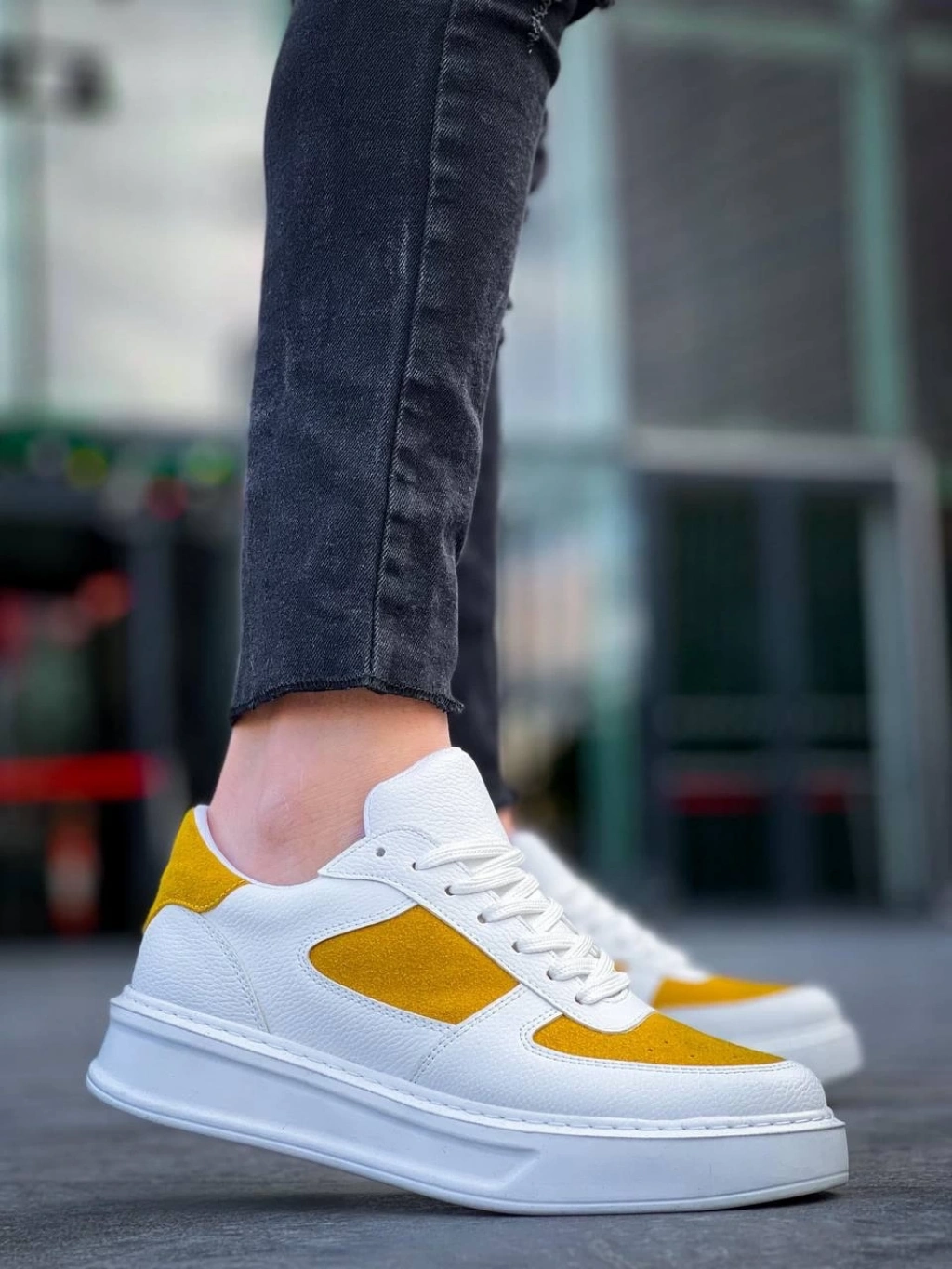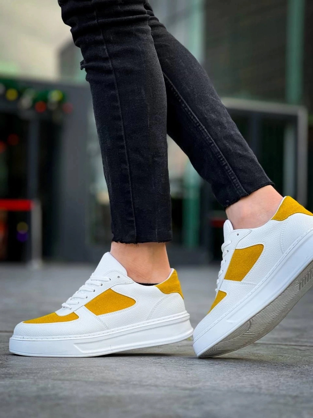 TAVSİYE EDİLEN GÜVENLİ SATICI KB-X8 Kuback Beyaz Cilt Sarı Süet Detaylı Beyaz Yüksek Taban Günlük Spor Ayakkabı