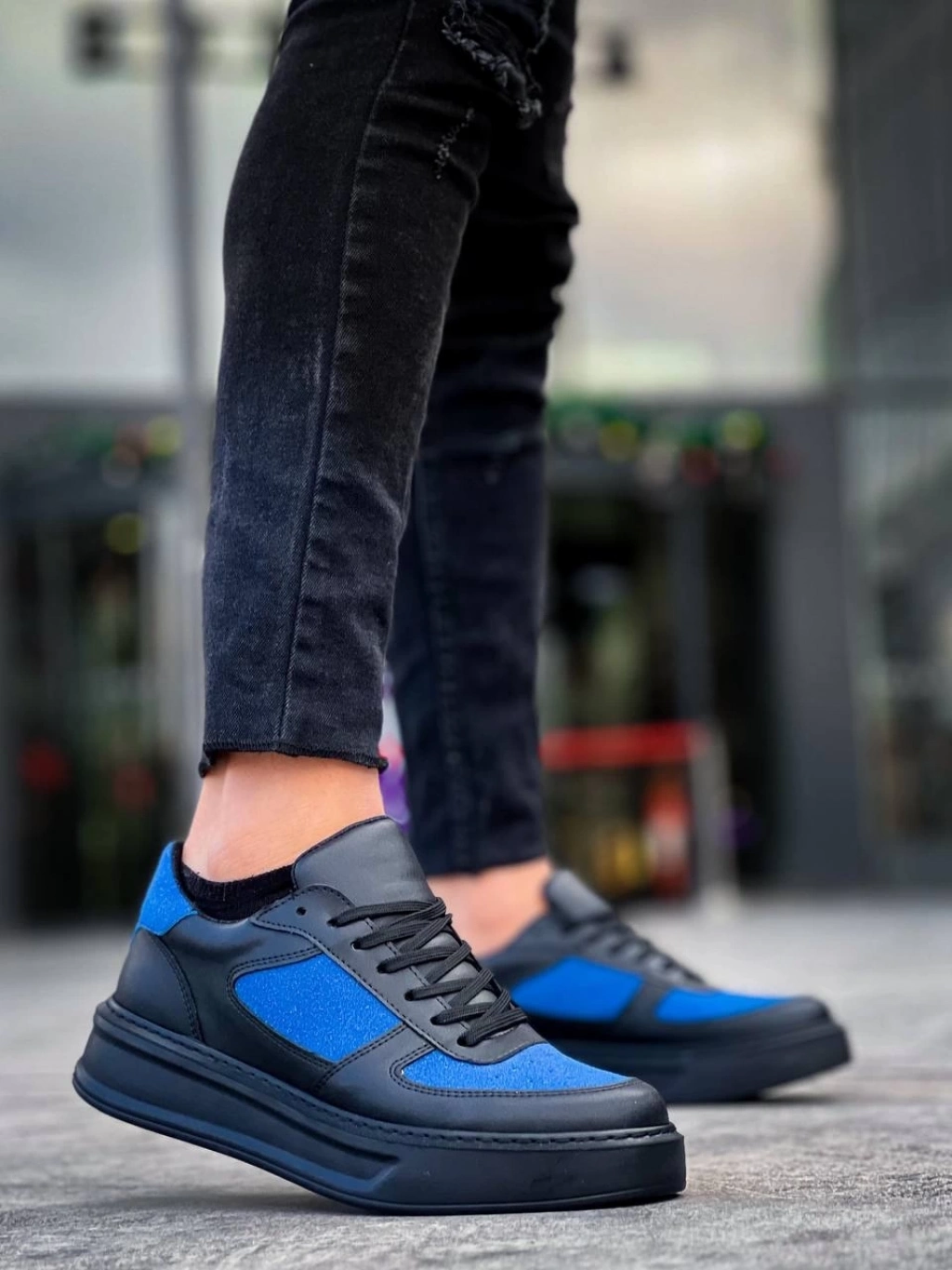 KB-X8 Kuback Siyah Cilt Mavi Süet Detaylı Siyah Yüksek Taban Günlük Spor Ayakkabı