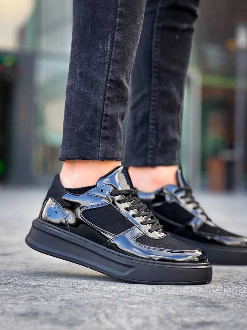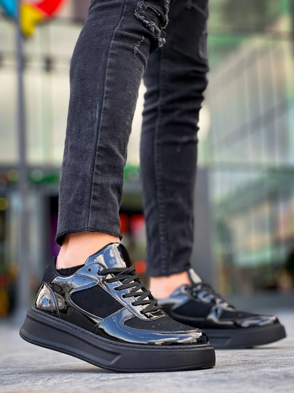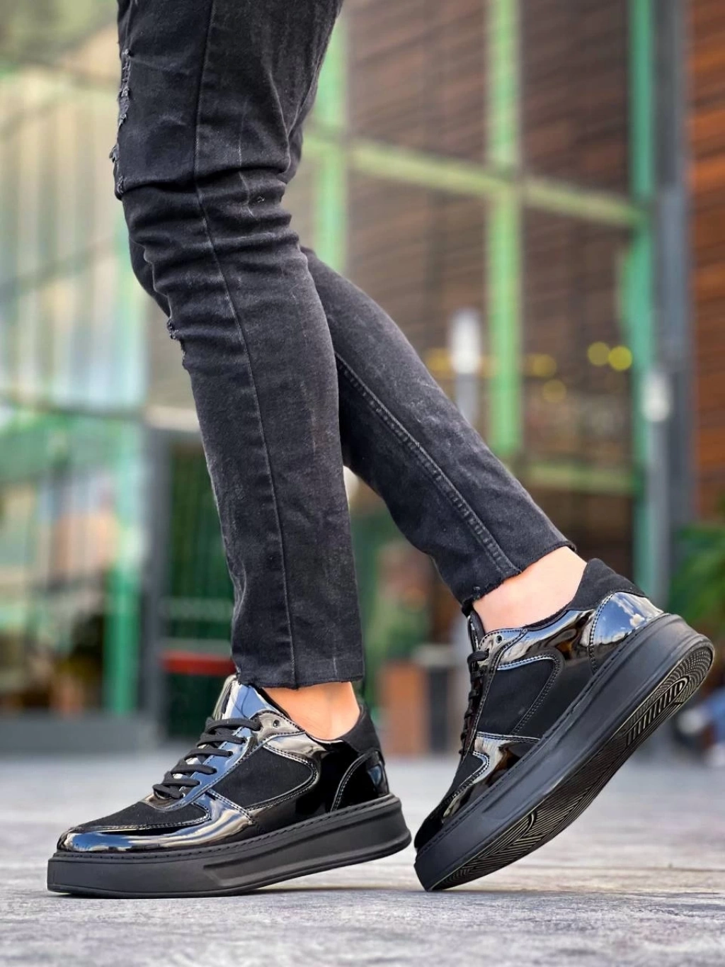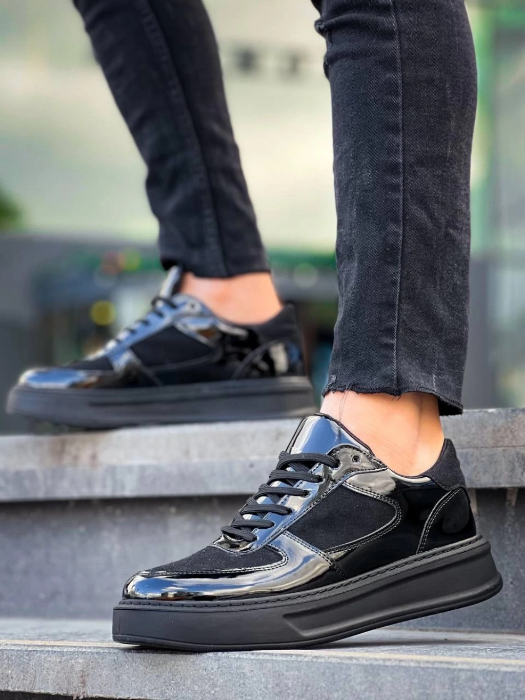 TAVSİYE EDİLEN GÜVENLİ SATICI KB-X8 Kuback Siyah Rugan Yüksek Siyah Taban Günlük Spor Ayakkabı