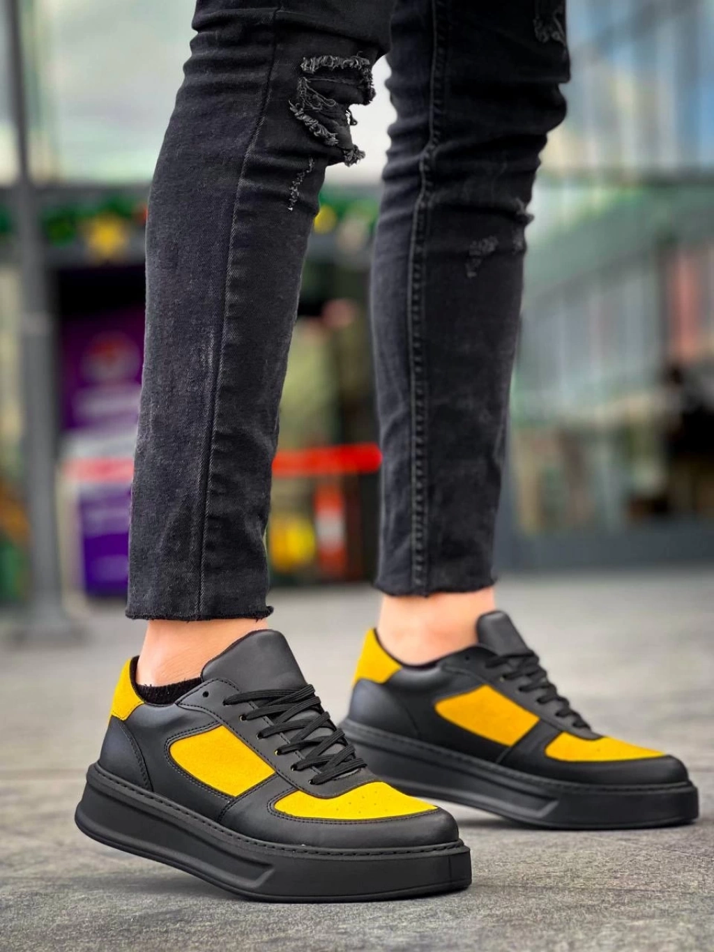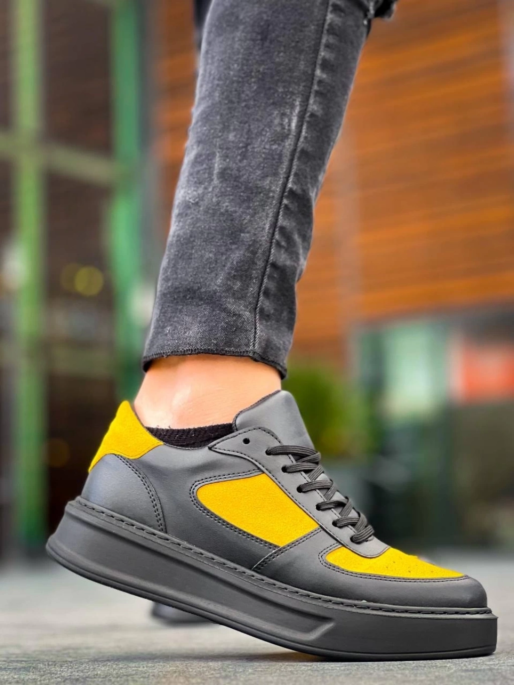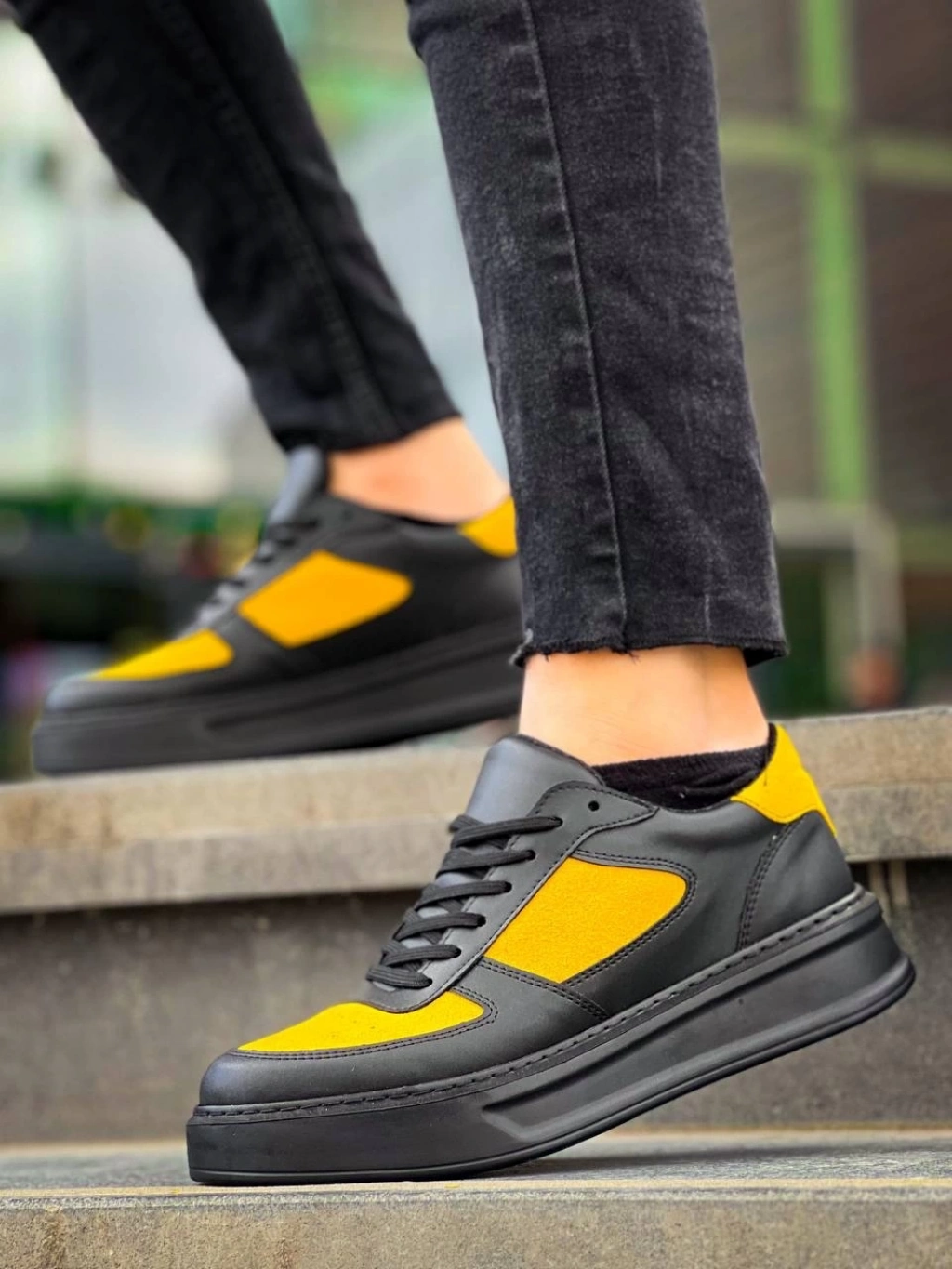 TAVSİYE EDİLEN GÜVENLİ SATICI KB-X8 Kuback Siyah Sarı Cilt Yüksek Taban Günlük Spor Ayakkabı