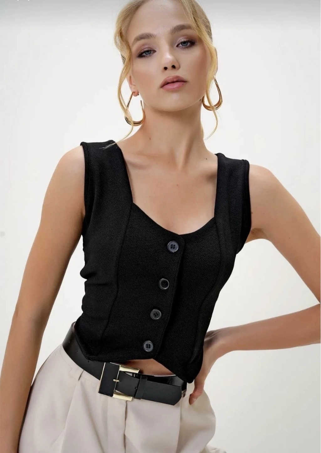Her tarza ve her yaşa hitap eden Krep Kumaş Düğmeli Yelek Siyah S3395, şıklığı ve rahatlığı bir arada arayan kadınların favorisi olmaya aday!