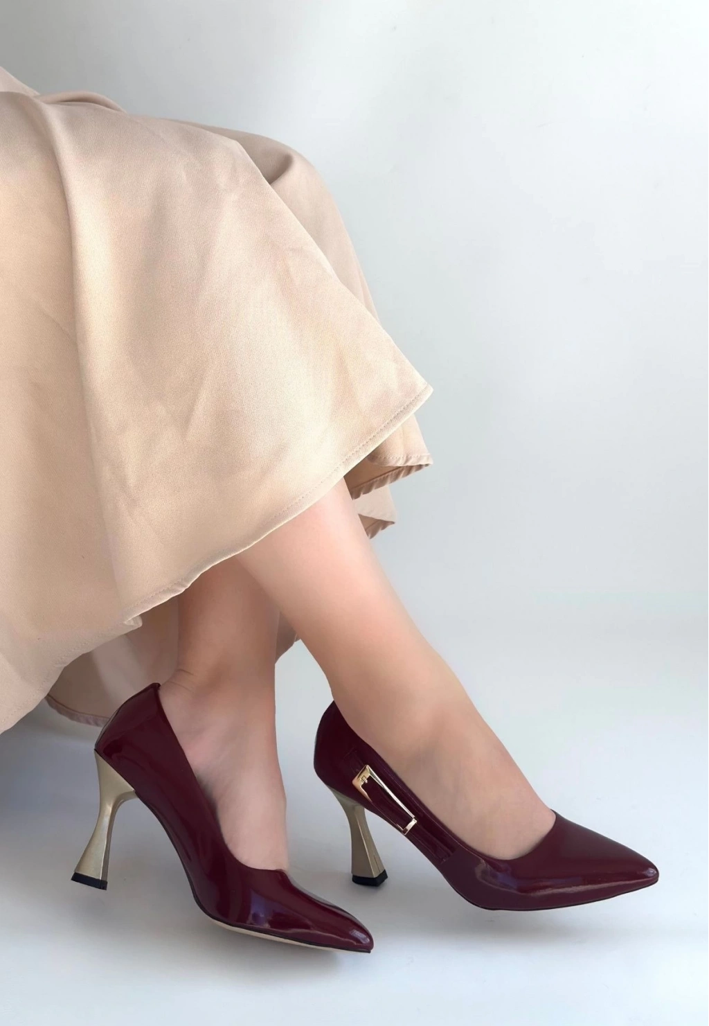 Motya Bordo Rugan Topuklu Ayakkabı
