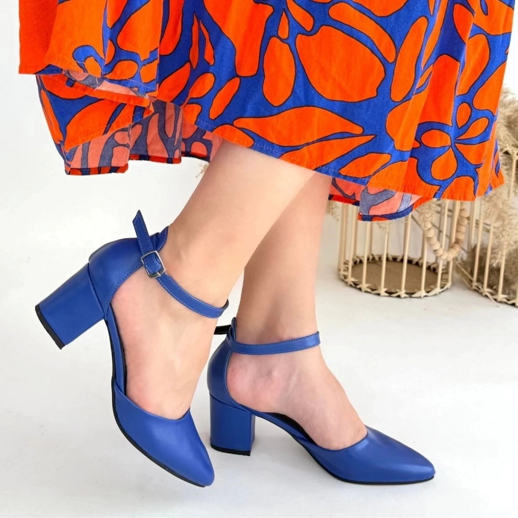 Mulen Mavi Cilt Topuklu Ayakkabı