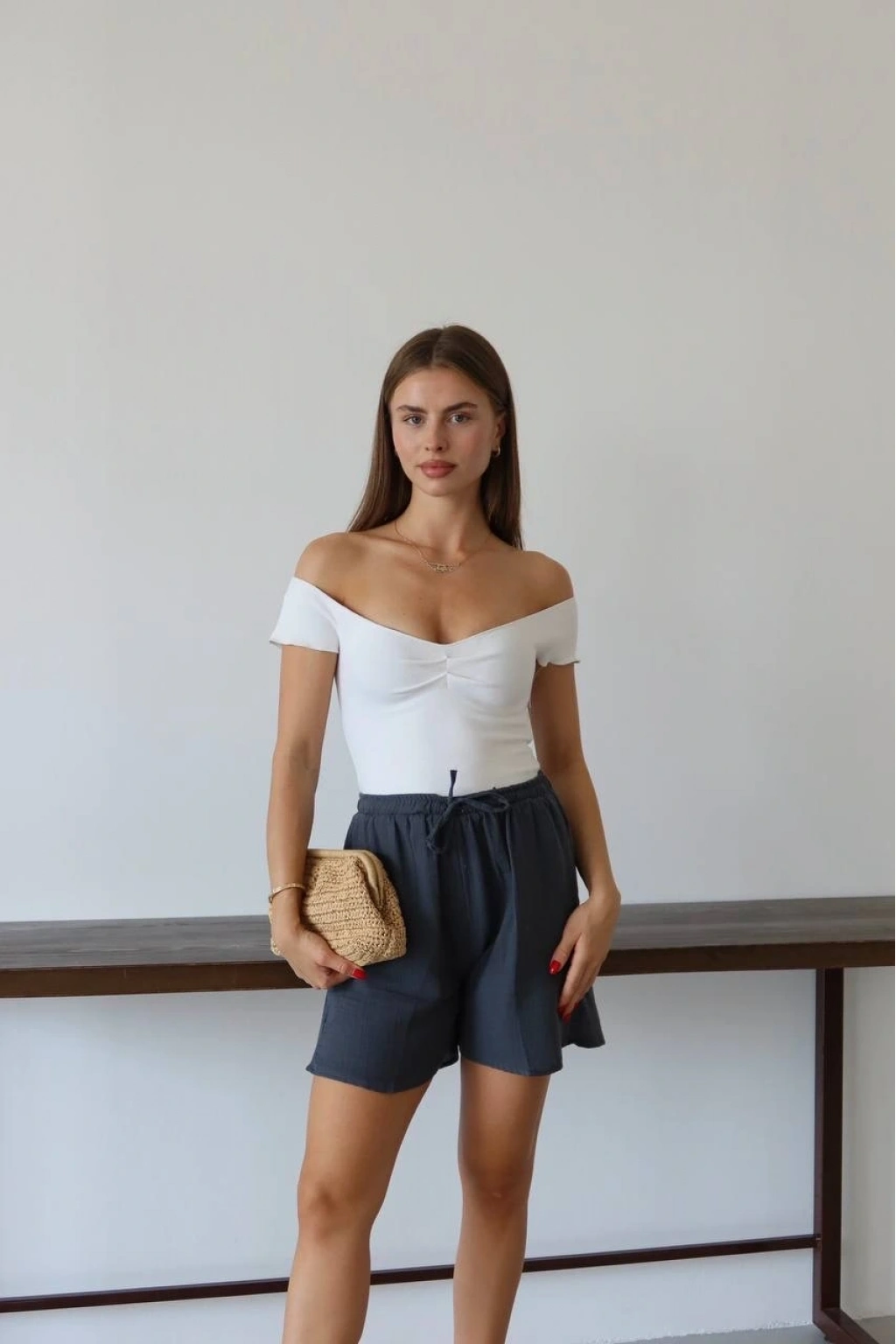 Yaz aylarının vazgeçilmezi şortların şıklıkla buluştuğu Müsli kumaş şort bağcıklı antrasit pt, gardırobunuzun favori parçası olmaya aday!