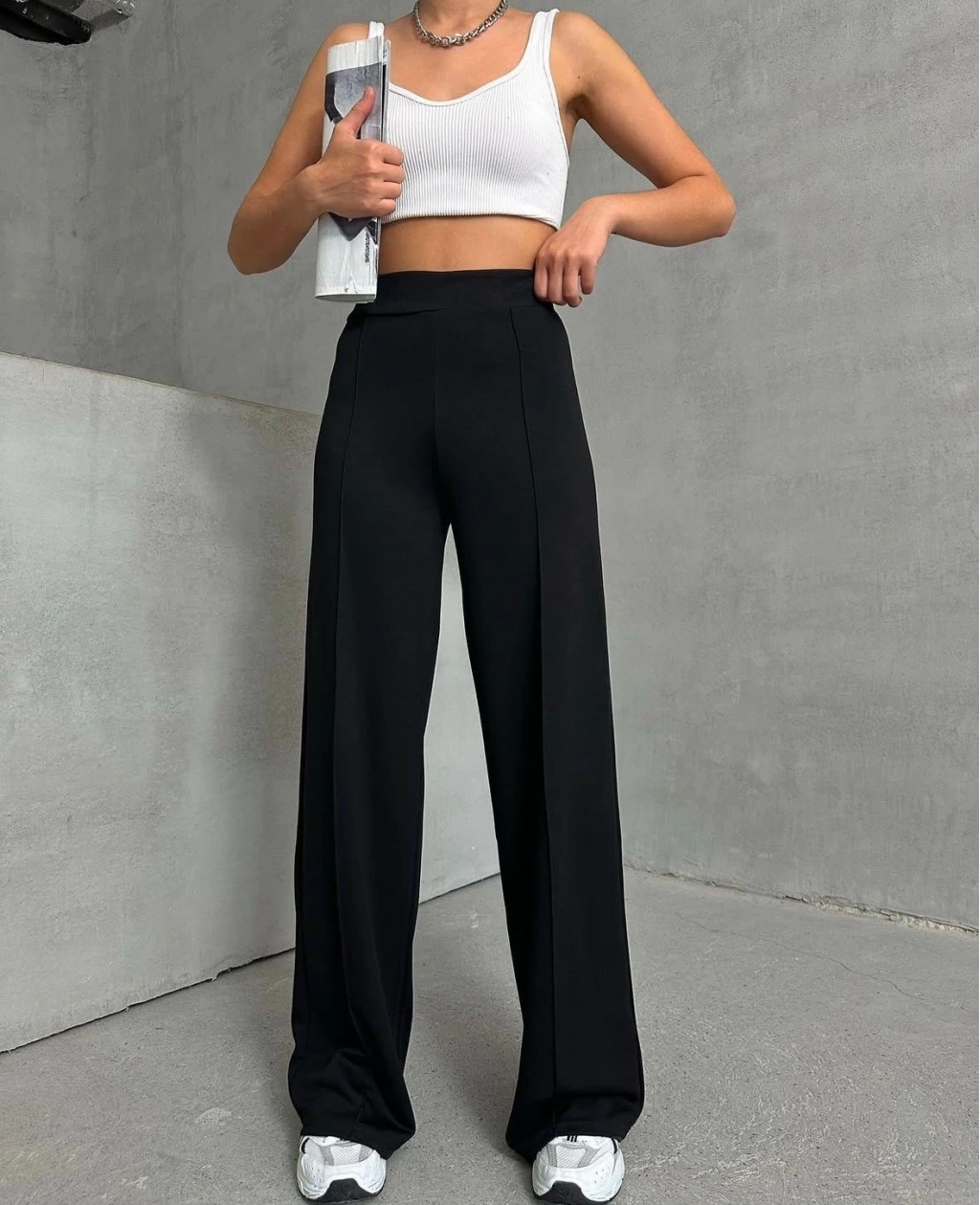 Modayı takip edenlerin tercihi olan bu siyah önü çımalı pantolon ile tarzınızı tamamlayabilirsiniz.