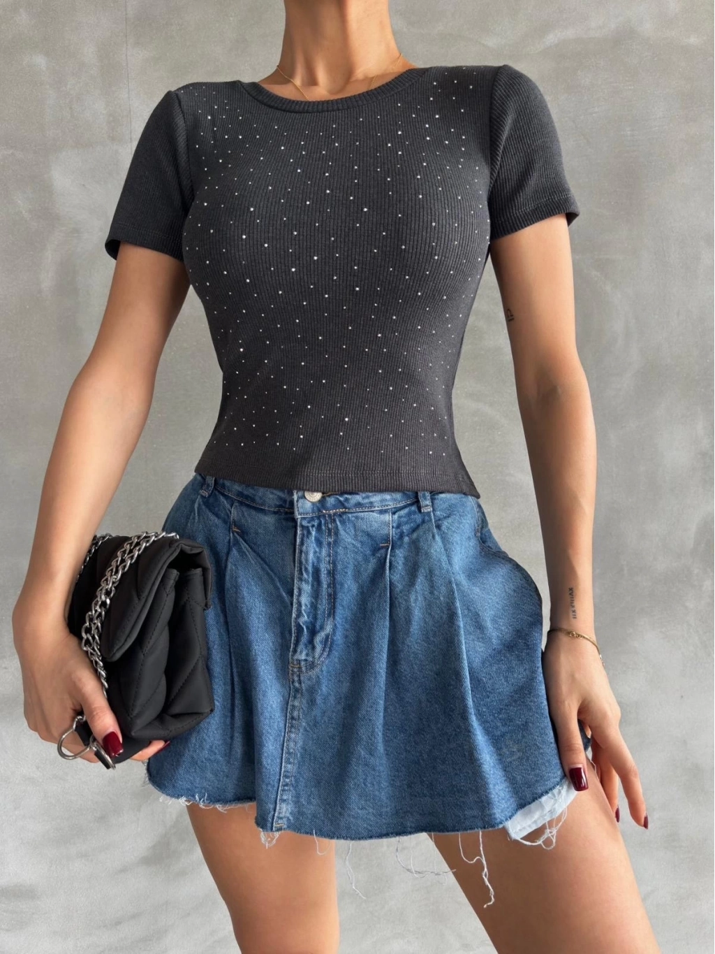 Şıklık ve rahatlığı aynı anda sunan Önü Taşlı Antrasit Bluz S3512, gardırobunuzun vazgeçilmezi olmaya aday!