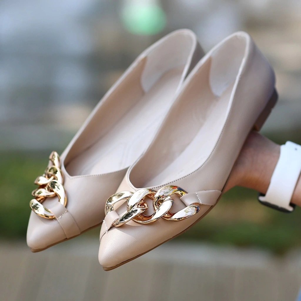 TAVSİYE EDİLEN GÜVENLİ SATICI Popi Nude Cilt Zincirli Babet Ayakkabı
