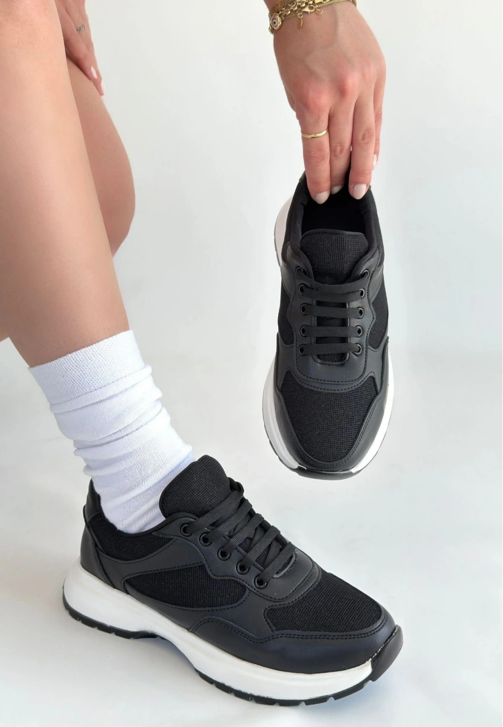 Slar Siyah Cilt Bağcıklı Spor Ayakkabı