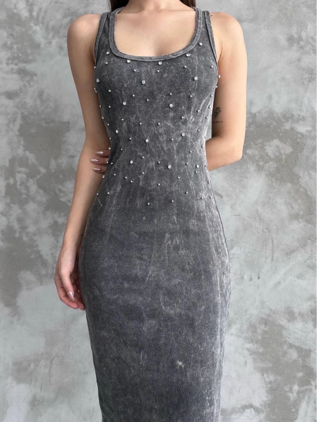 Şıklığı ve zarafeti aynı anda yaşamak isteyen kadınlar için ideal bir seçim olan Taşlı Askılı Elbise, gardırobunuzun vazgeçilmezi olmaya aday!