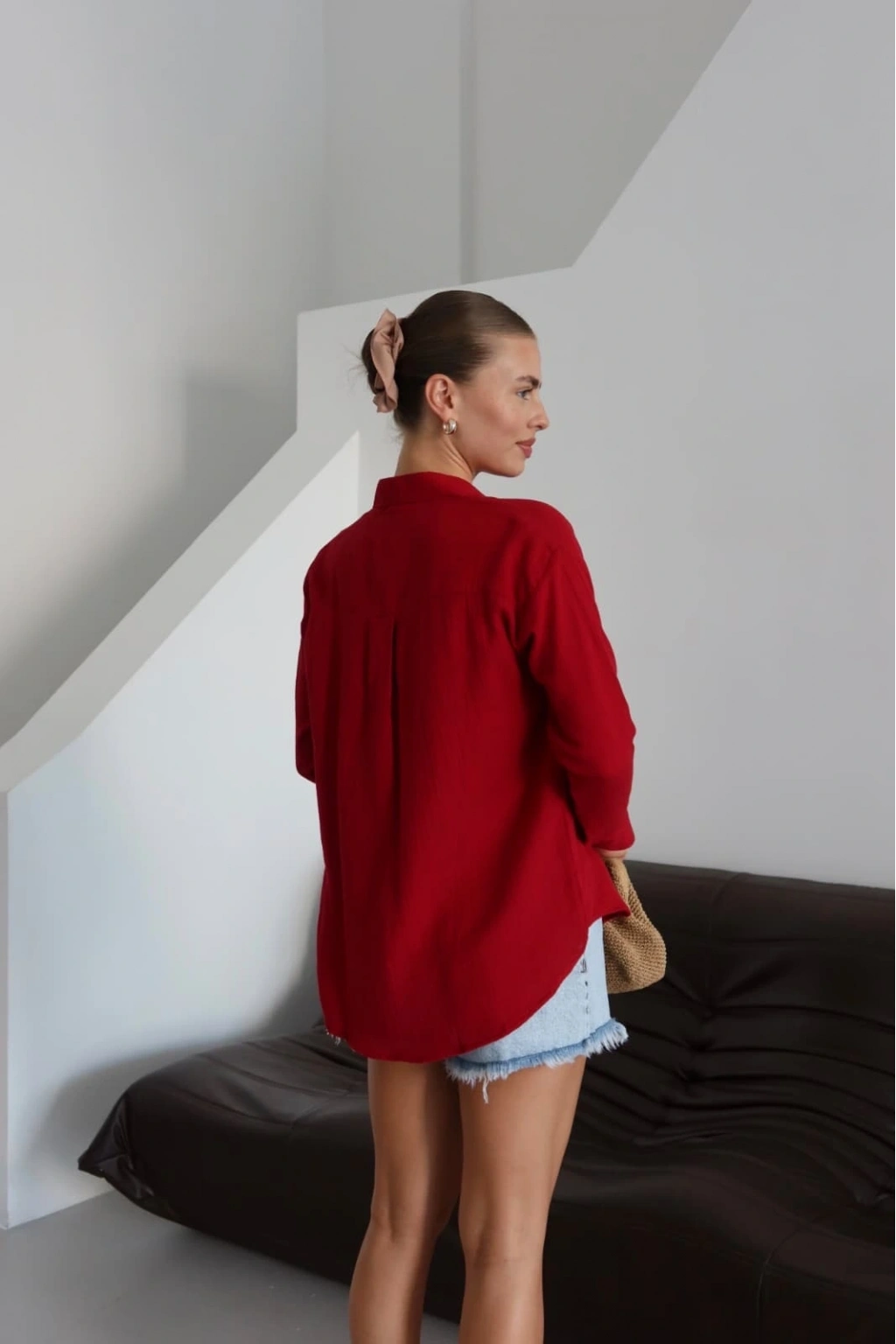 Tek cepli müslin gömlek bordo pt